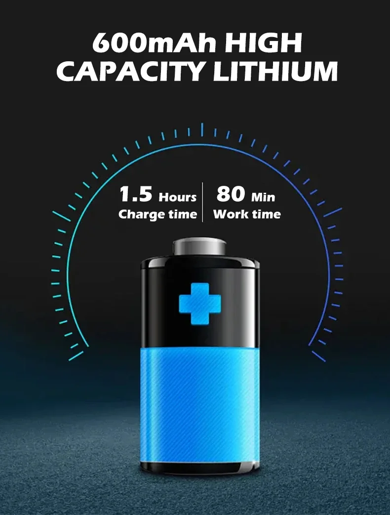 5.LED Digital Display: Experience ultimate control and convenience with our shaving razor’s LED digital display. The display provides real-time feedback on battery life, allowing you to monitor charge status and plan your grooming routine accordingly. Additionally, it may also indicate shaving modes or other settings, ensuring you have the perfect configuration for your personal needs. The clear and concise display adds a touch of sophistication to your shaving experience, making it both functional and stylish.