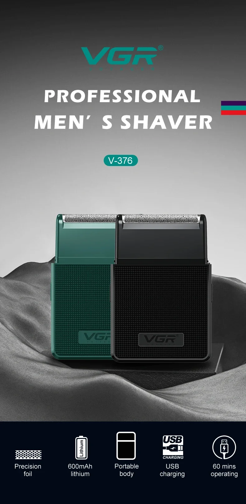 4.Long Battery Life: Enjoy extended use with a long-lasting battery that provides up to 60 minutes of cordless shaving on a single charge. No more frequent recharging – just reliable performance whenever you need it.
