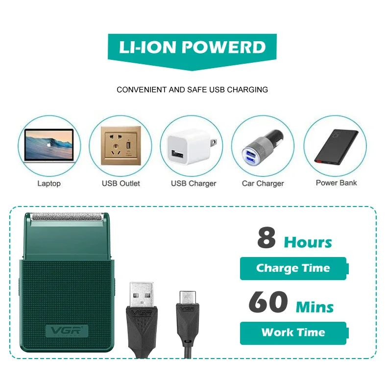 3.USB Charging: Stay powered up anywhere with the convenience of USB charging. Whether you’re at home, in the office, or on the go, a simple USB connection is all you need to keep your shaver ready for action.