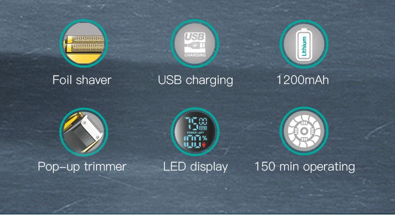 ★ Battery power:The shaver has a built-in 1200mAh battery, which can be used for up to 150 minutes after charging for 2 hours.