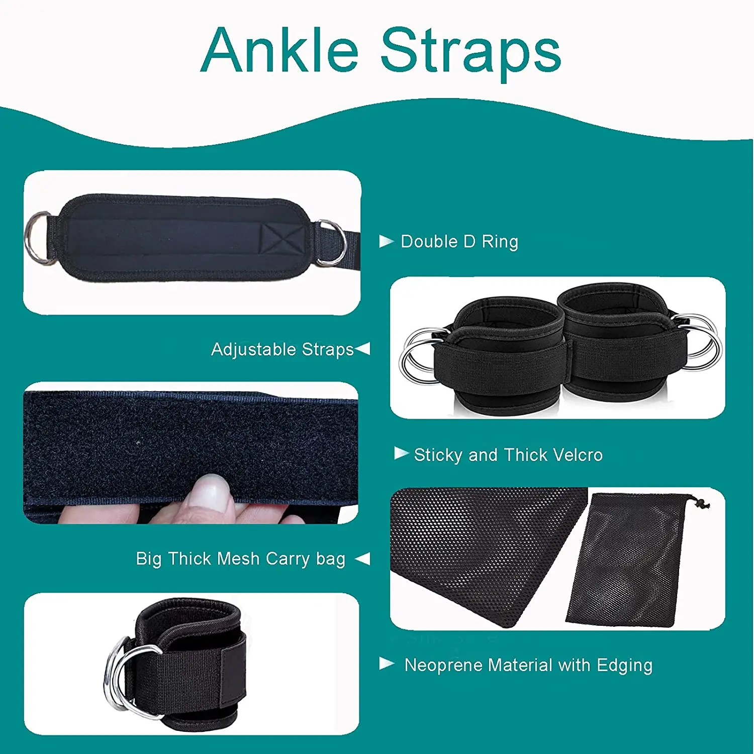 * Neoprene ankle pad give you comfortable touch throughout full workout.Double D-ring secure band very well, Velcro will keep sticky after long time use.