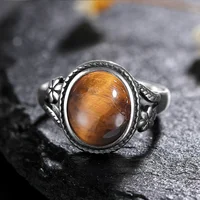 Vinatge Silver Ring Female Jewelry Natural Moonstone Tiger's Eye Personalized Rings for Women Bijoux Wedding Jewelry Gift S925