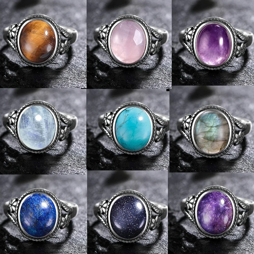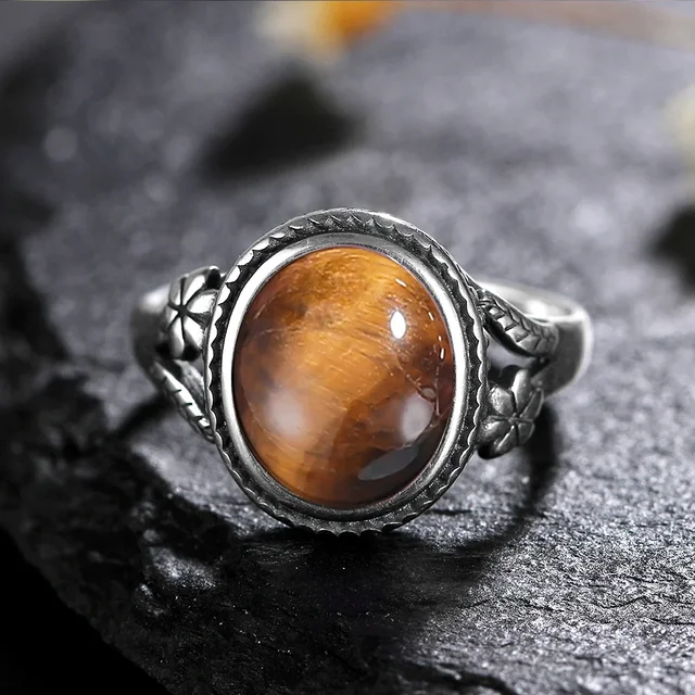 Vinatge Silver Ring Female Jewelry Natural Moonstone Tiger’s Eye Personalized Rings for Women Bijoux