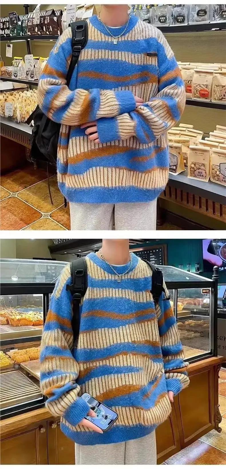 • Retro American Style : Embrace the vintage charm of American retro with this striped knit sweater, perfect for adding a touch of nostalgia to your casual wardrobe.