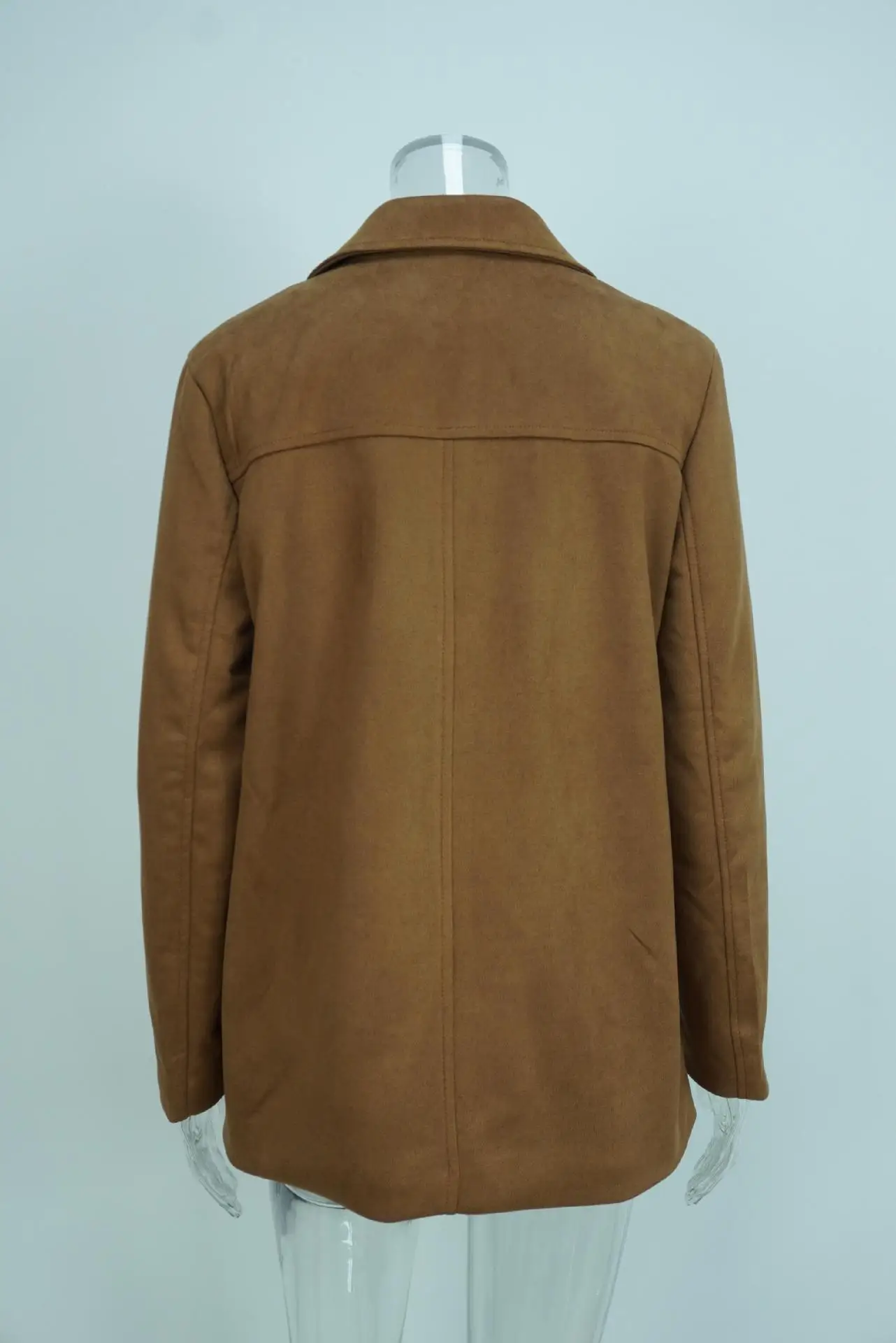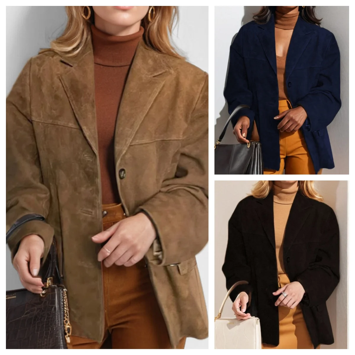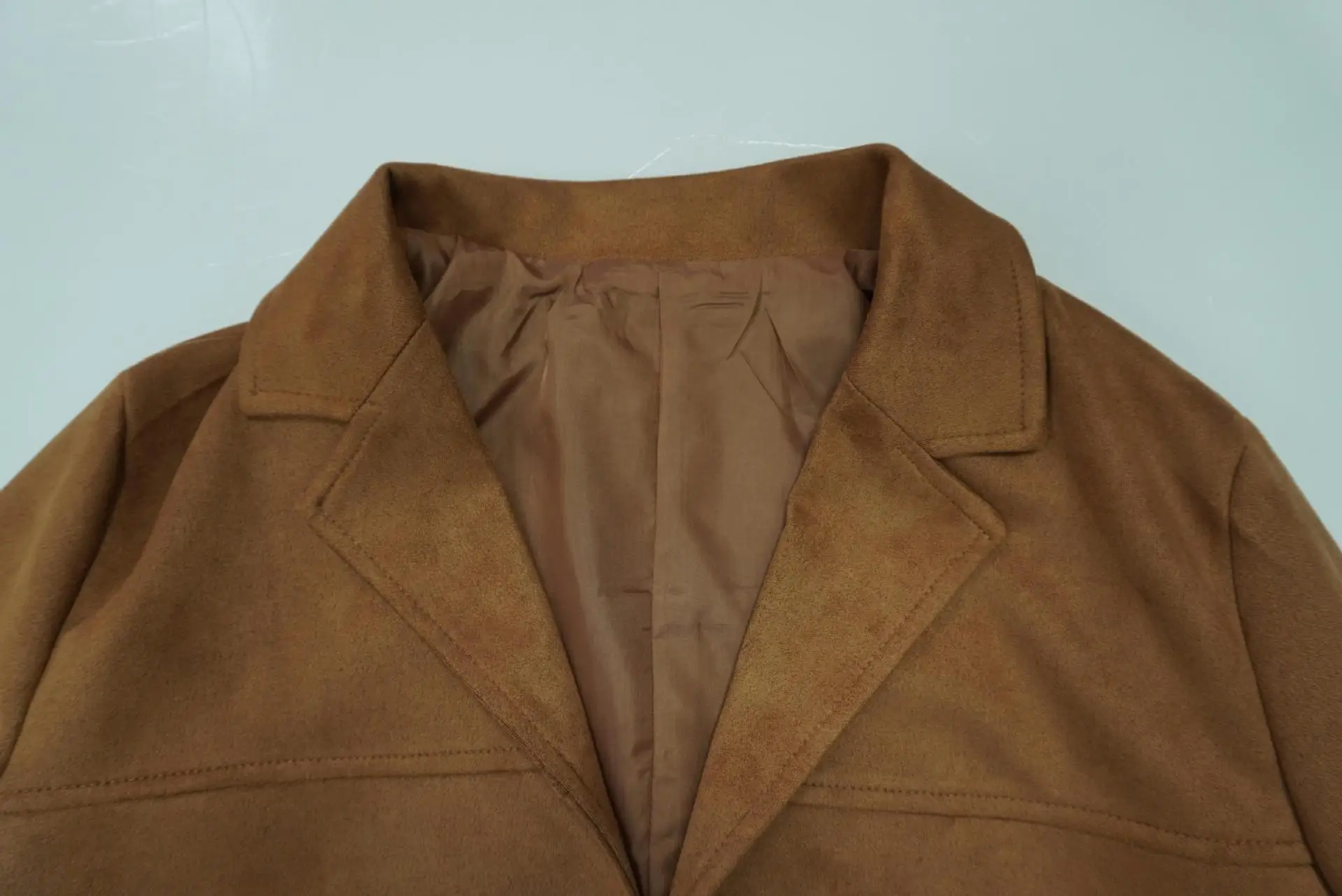 Be the first to review “Vintage Brown Blazer Women Suede Leather Jacket Autumn Fashion Single Breasted Lapel Loose Coats Street”