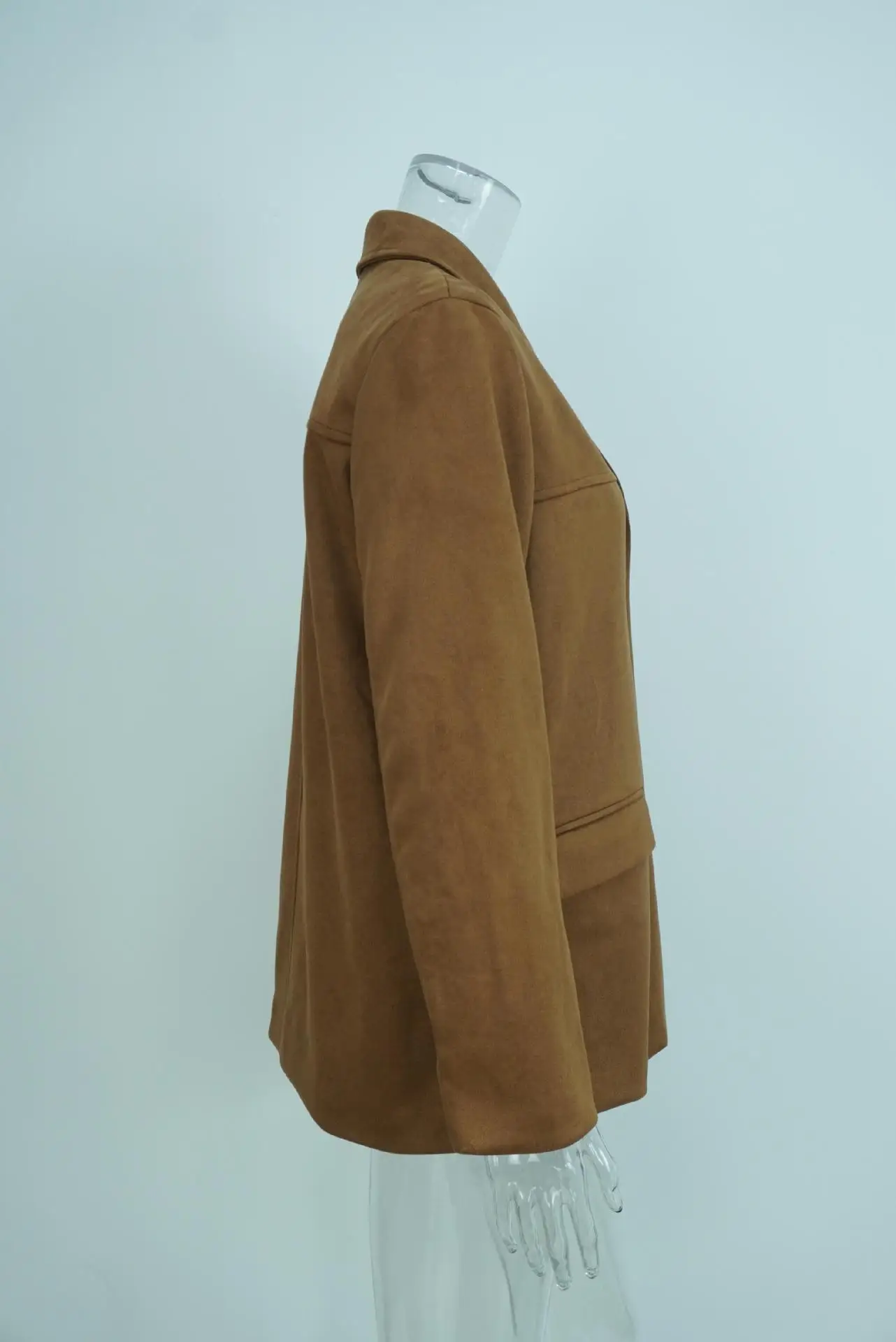 Vintage Brown Blazer Women Suede Leather Jacket Autumn Fashion Single Breasted Lapel Loose Coats Street