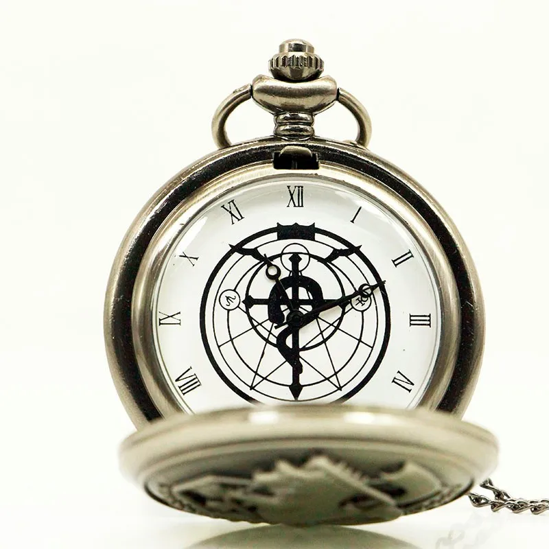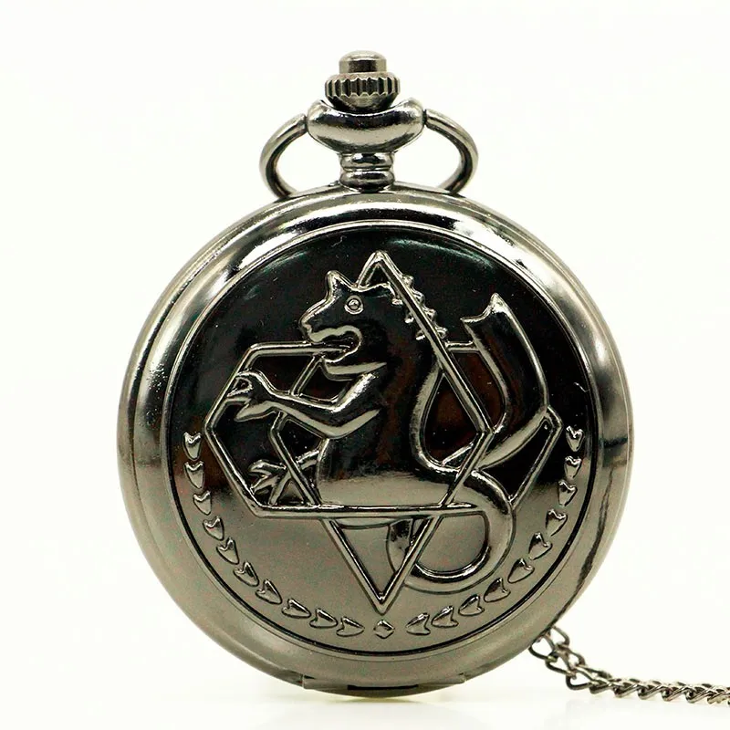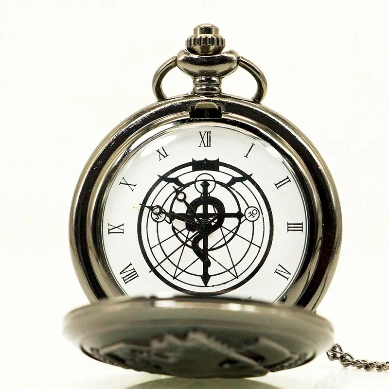 Vintage FullMetal Alchemist Edward Elric Cosplay Pocket watch Dull Polish Brown Hollow Men’s Quartz