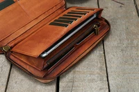 Vintage Genuine leather wallet Men leather long wallet men purse clutch bag male money clips zip around money bag card holder