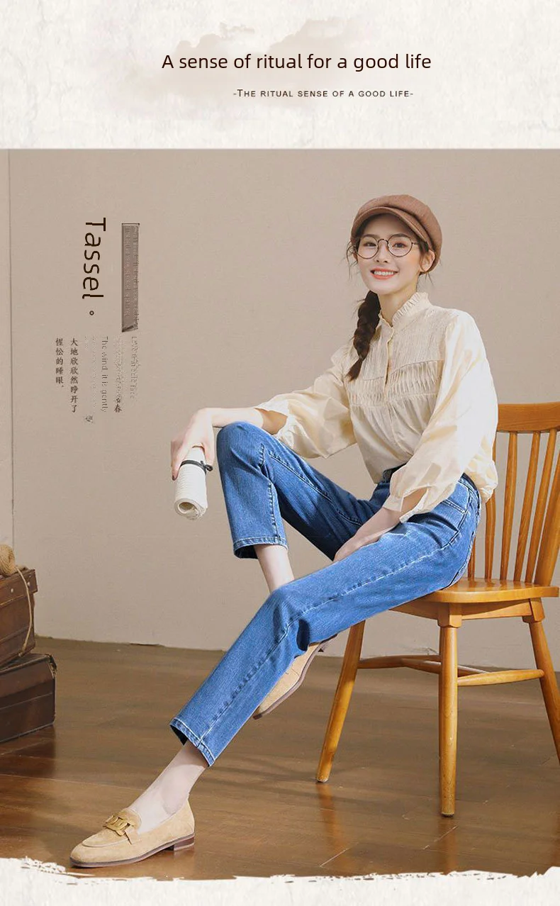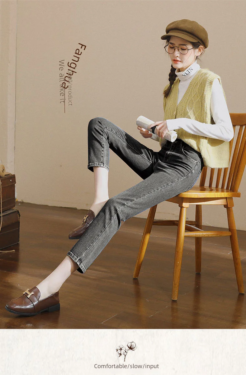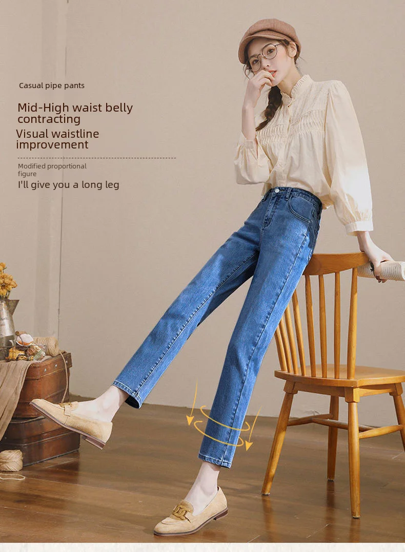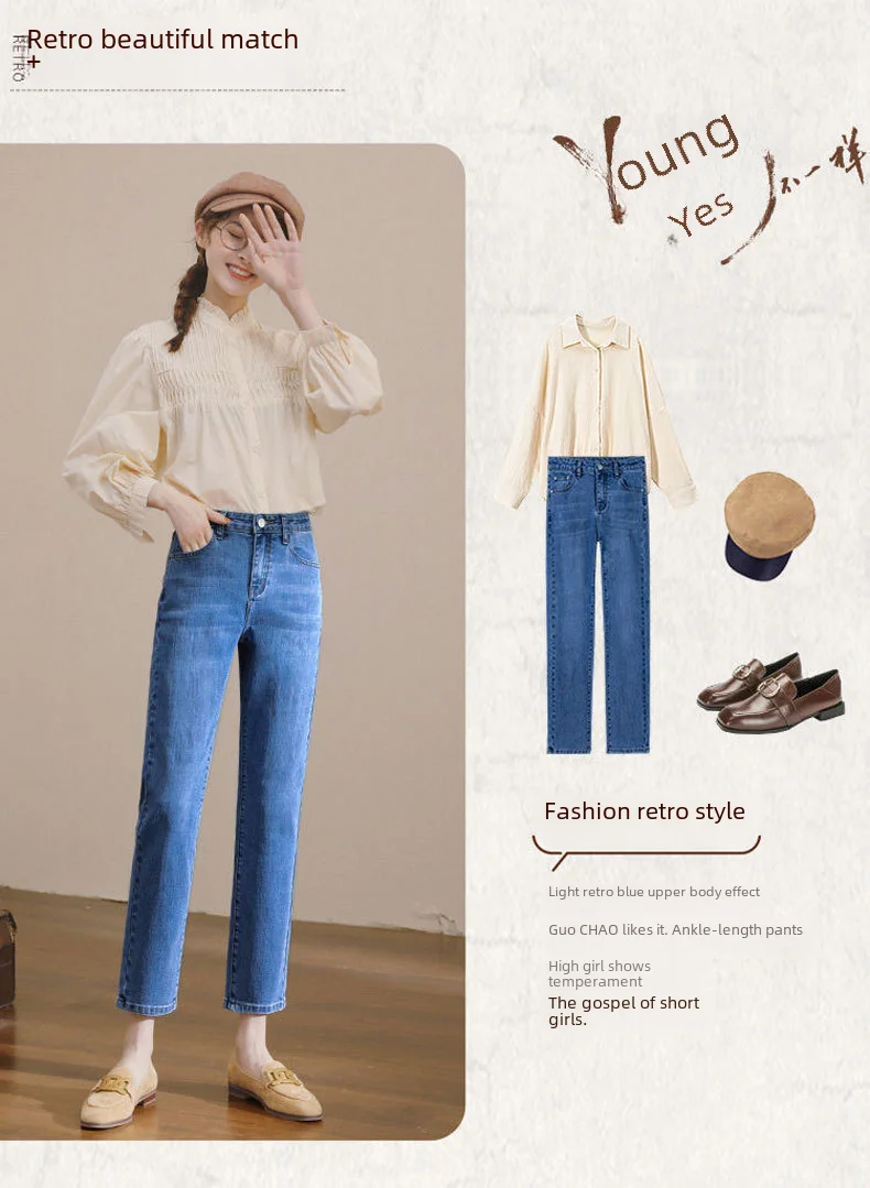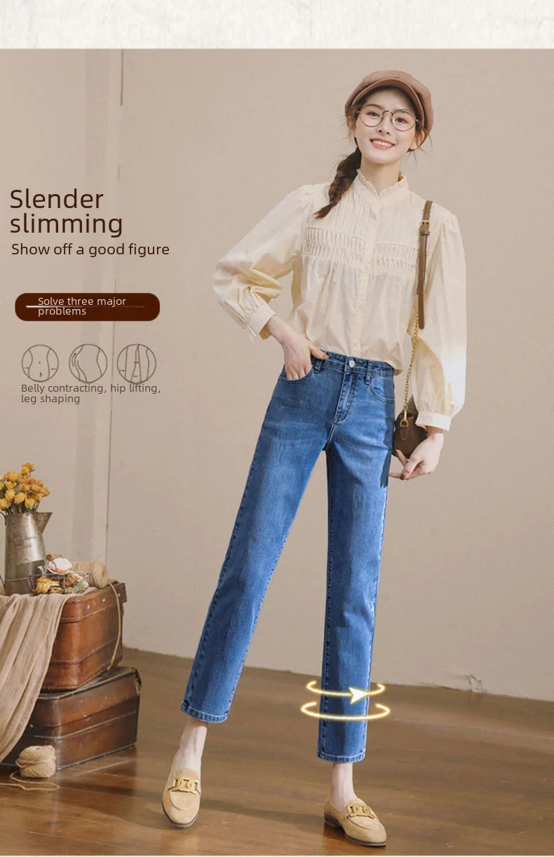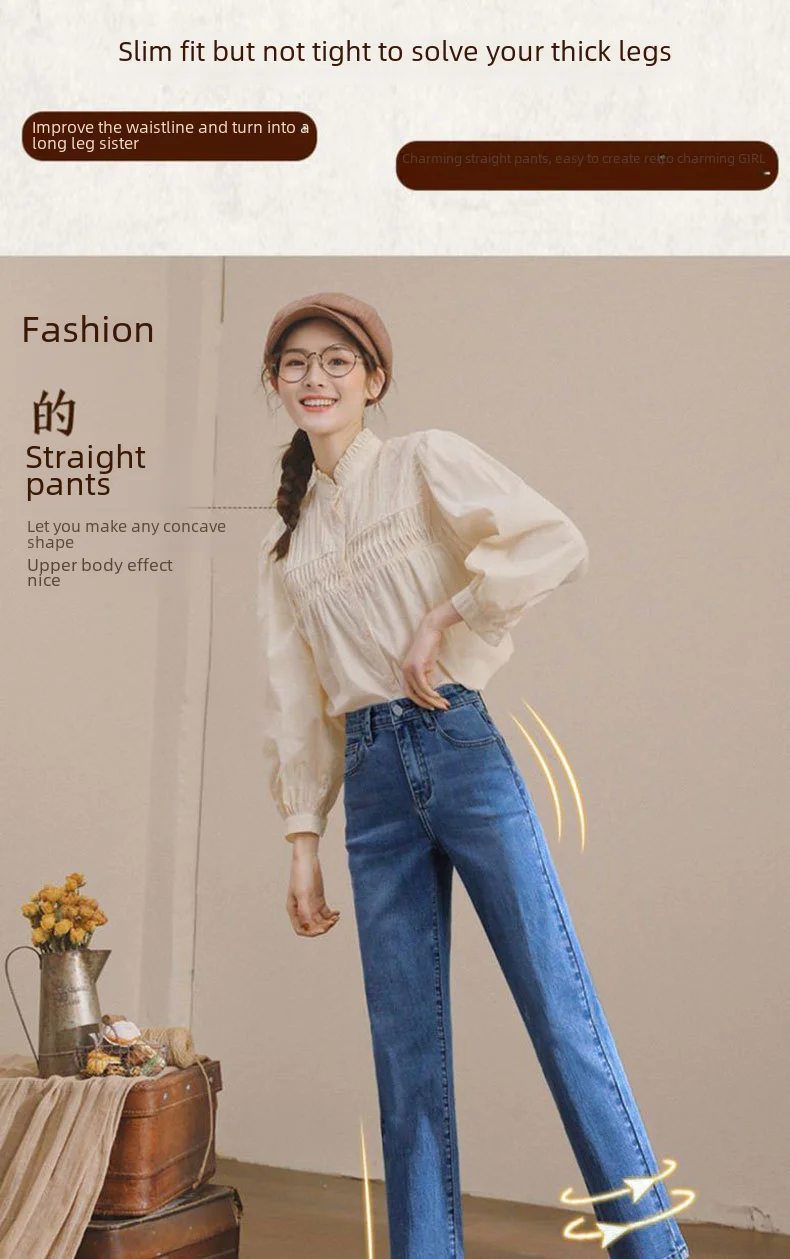 Vintage High-waisted Straight-leg Jeans For Women Slimming Comfortable Denim Pants
