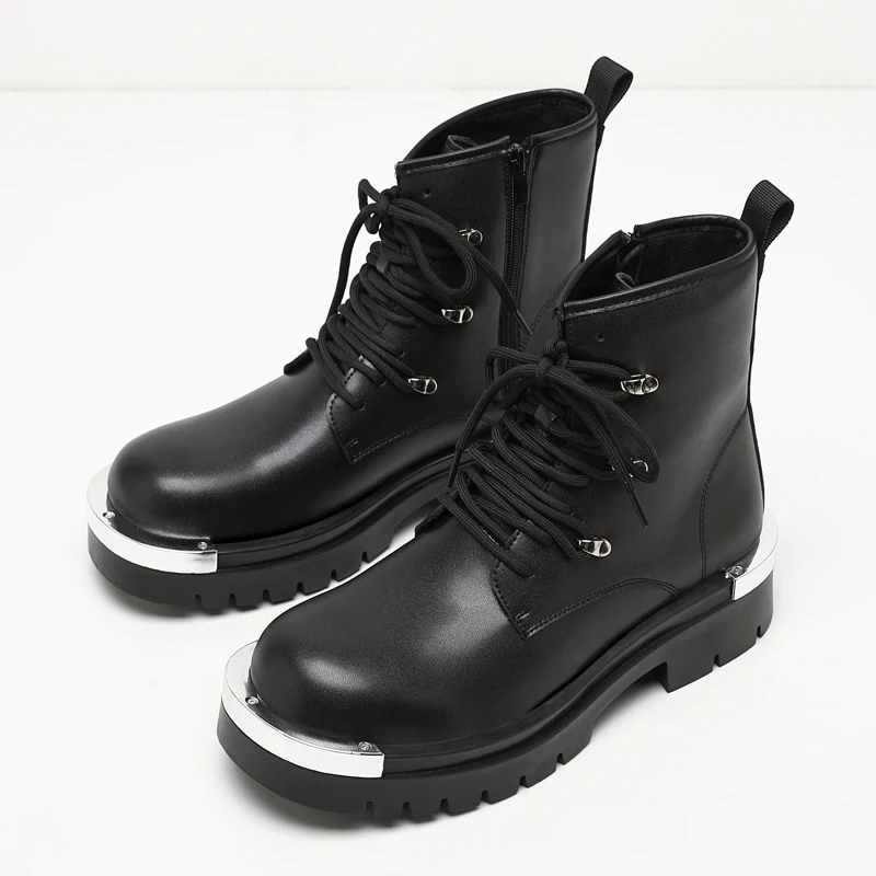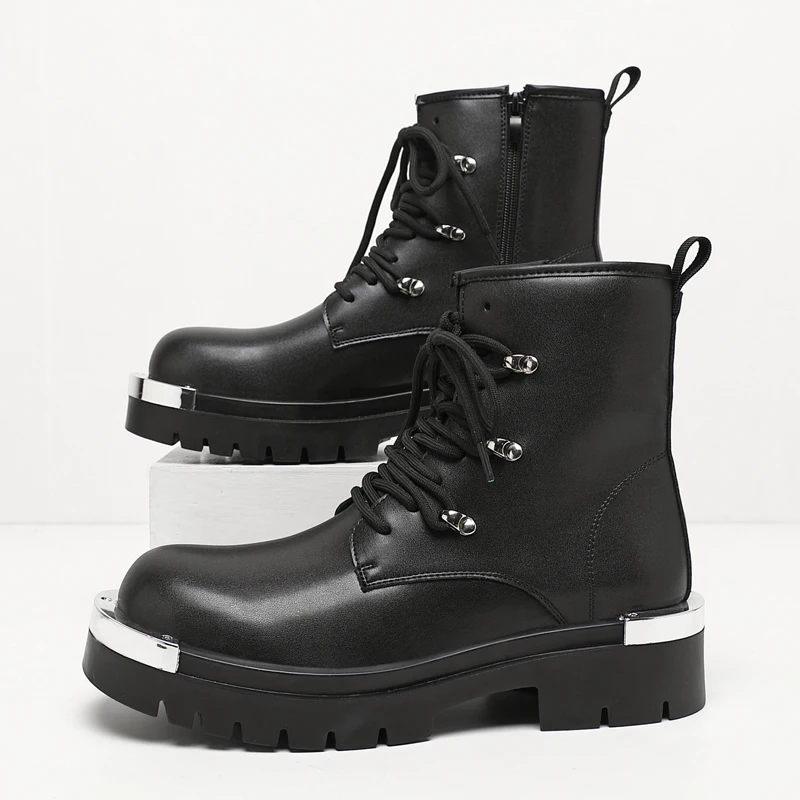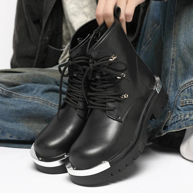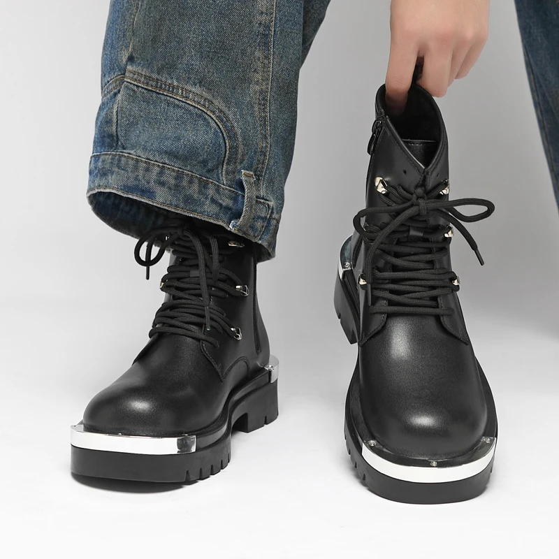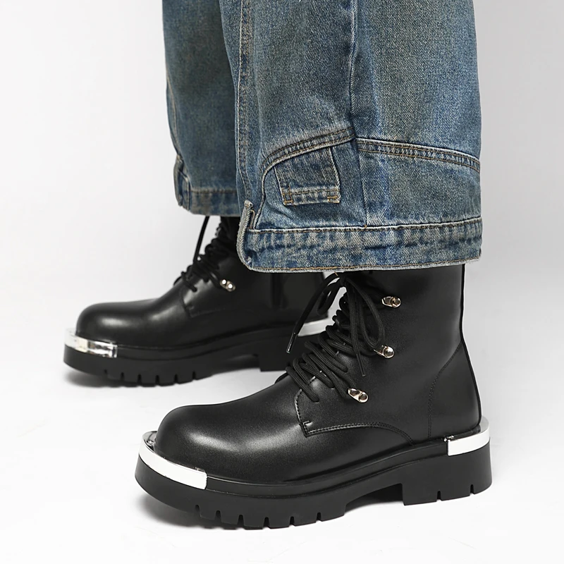 Vintage Leather Mens Snow Boots Fashion Man Thick Bottom Ankle Boots Lace Up High Top Shoes Outdoor Motorcycle Boots  Walk Shoes