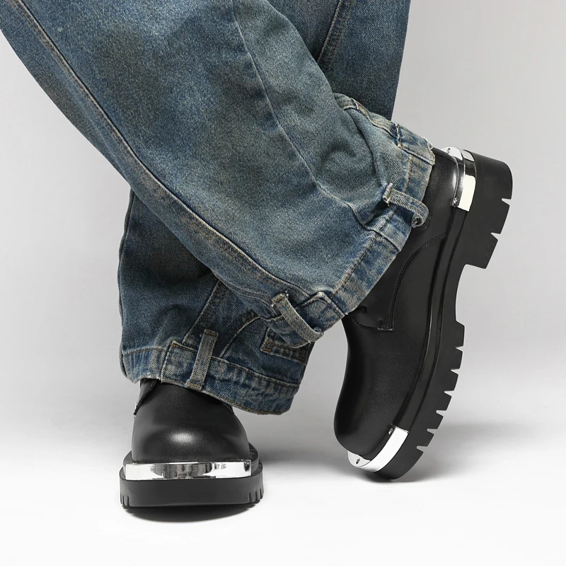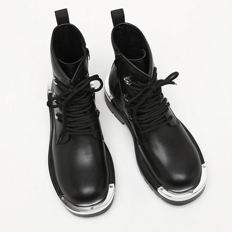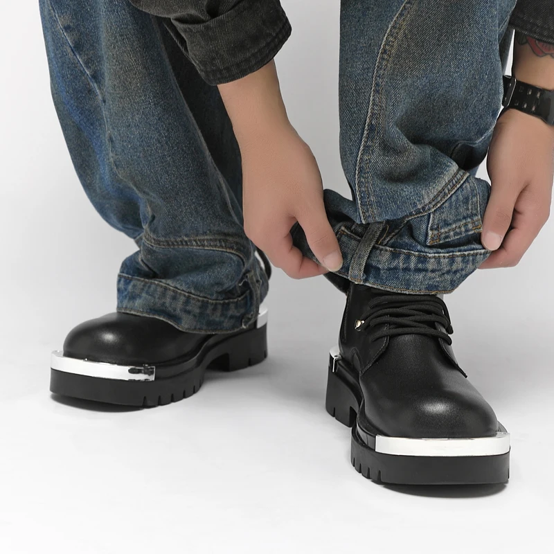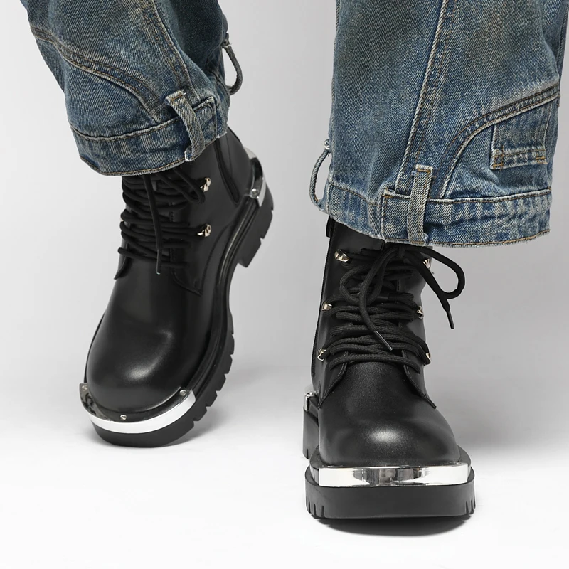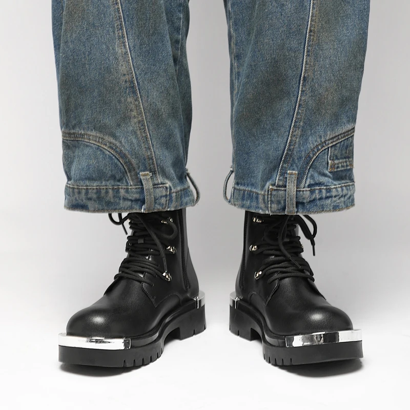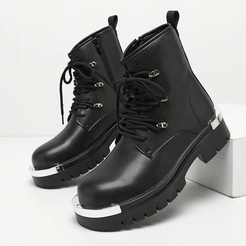 Vintage Leather Mens Snow Boots Fashion Man Thick Bottom Ankle Boots Lace Up High Top Shoes Outdoor Motorcycle Boots  Walk Shoes