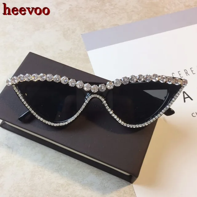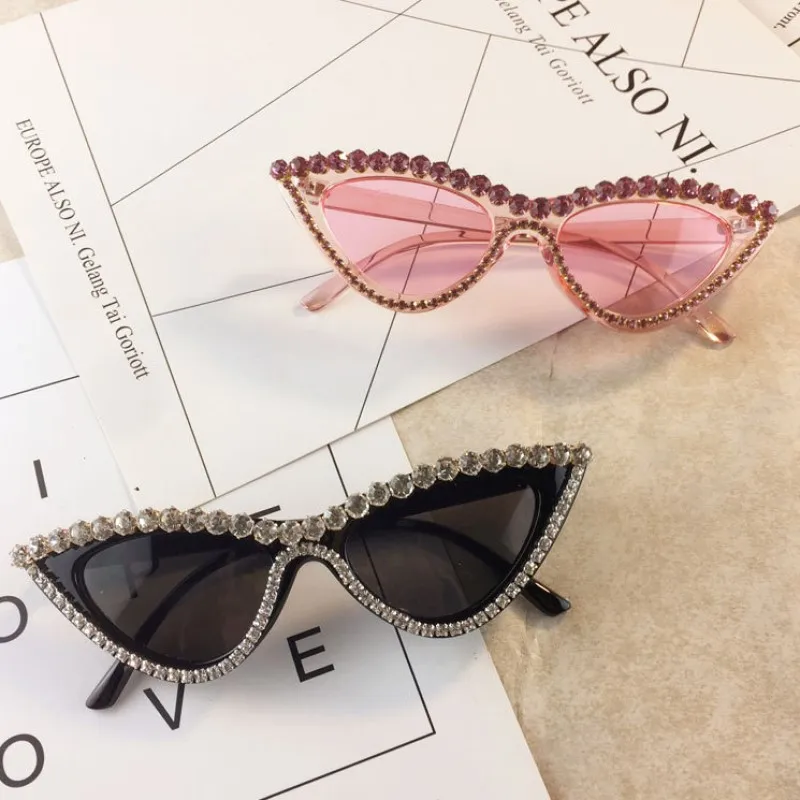 Vintage Luxury Crystal Diamond Cateye Sunglasses Women Brand Designer Black Pink Frame Cat Eye Sun Glasses Bling Bling Eyewear