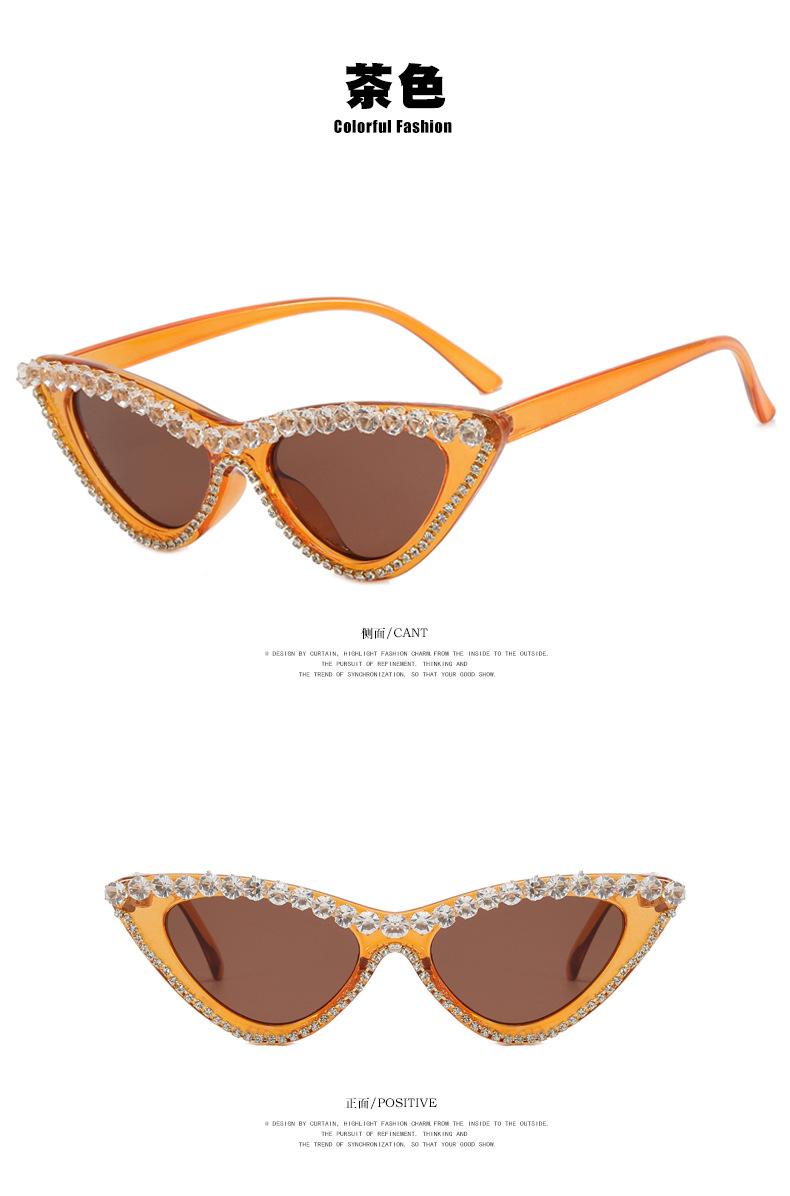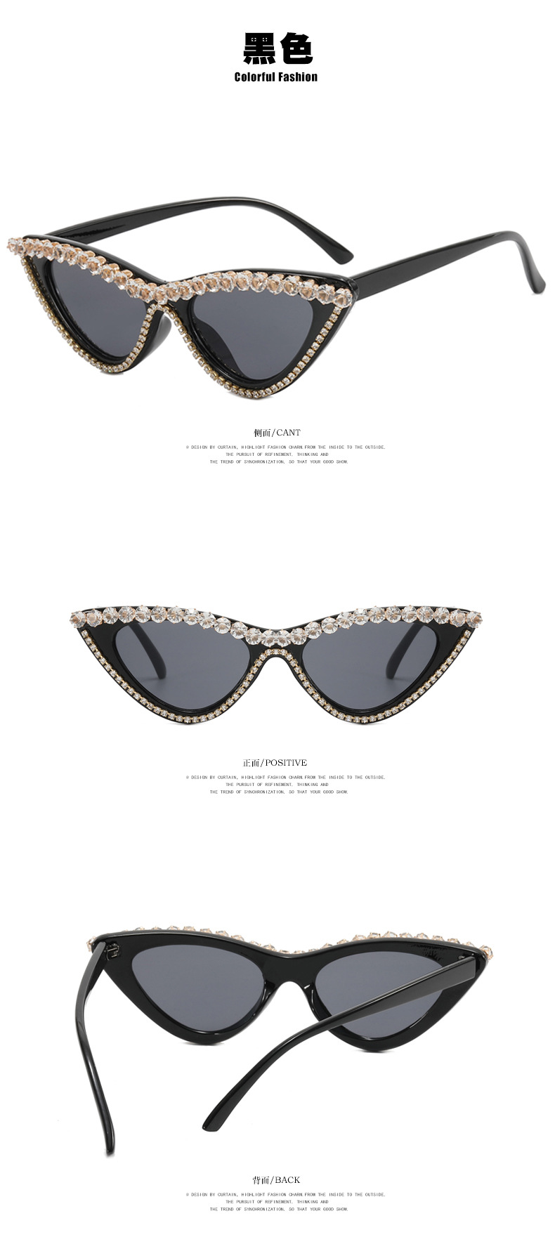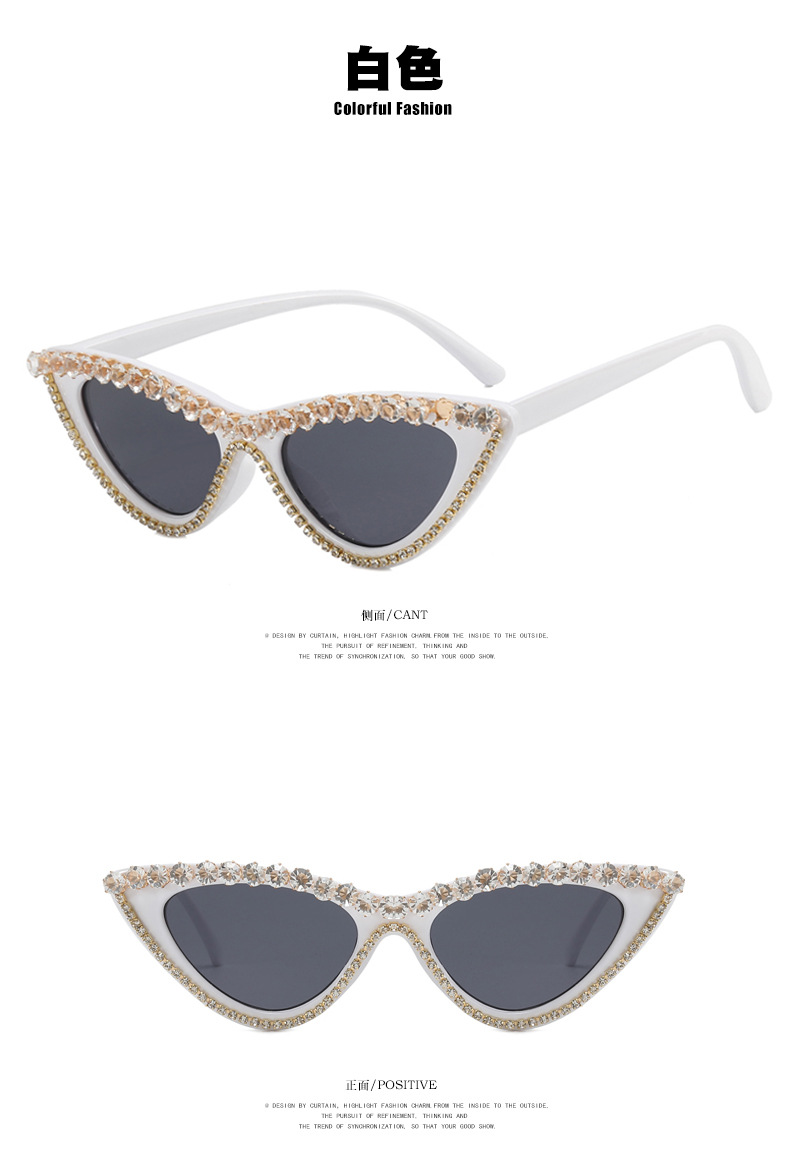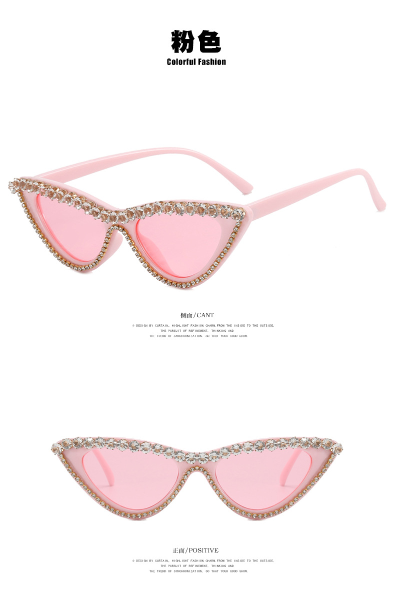 Vintage Luxury Crystal Diamond Cateye Sunglasses Women Brand Designer Black Pink Frame Cat Eye Sun Glasses
