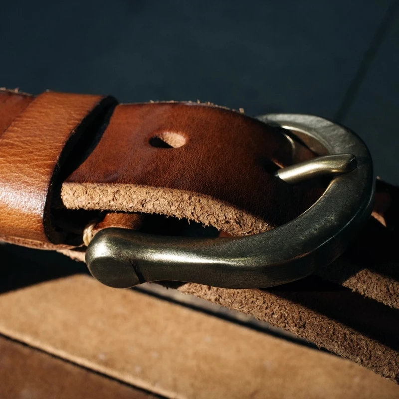 Luxury Handmade Leather Copper Buckle Man’s Belt Cowhide Retro All-match Casual Jeans Soft Belt