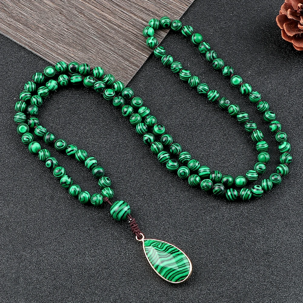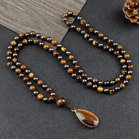 Vintage Men 108 Mala Beads Necklaces 6mm Natural Tiger Eye Stone Onyx Beads Prayer Necklace Drop Pendant Women Yoga Jewelry Gift