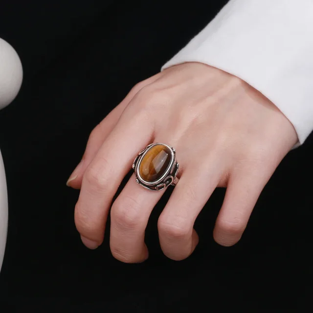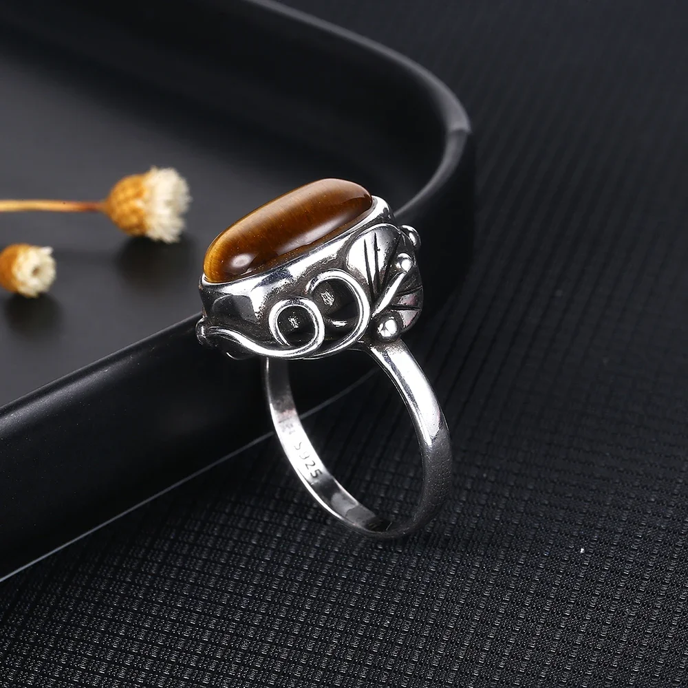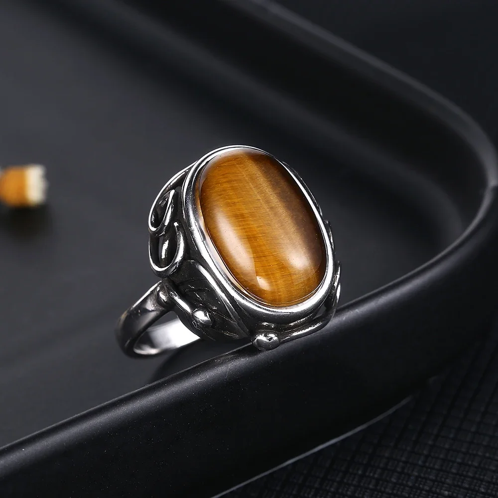 -8%Natural Labradorite Silver Ring Big Stones Tiger Eye Retro Rings for Women Men Wedding Anniversary Gifts Jewelry