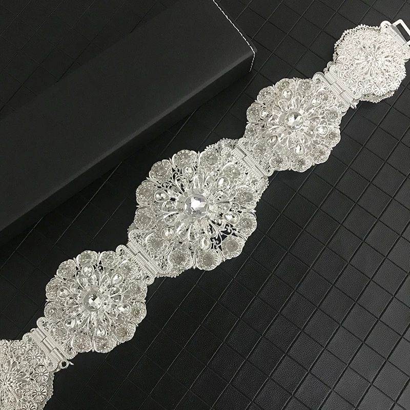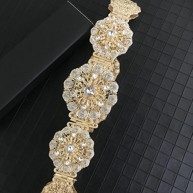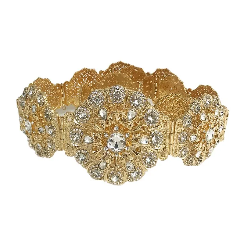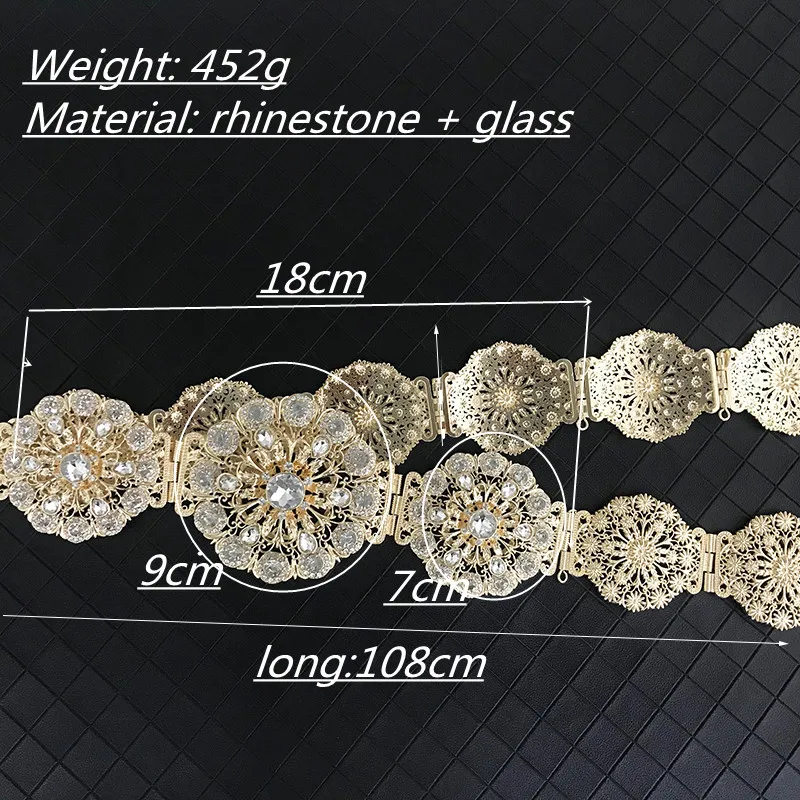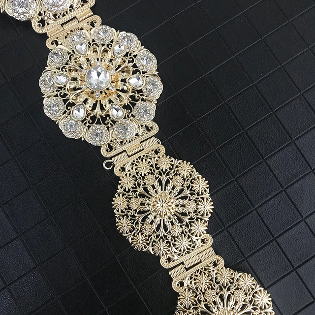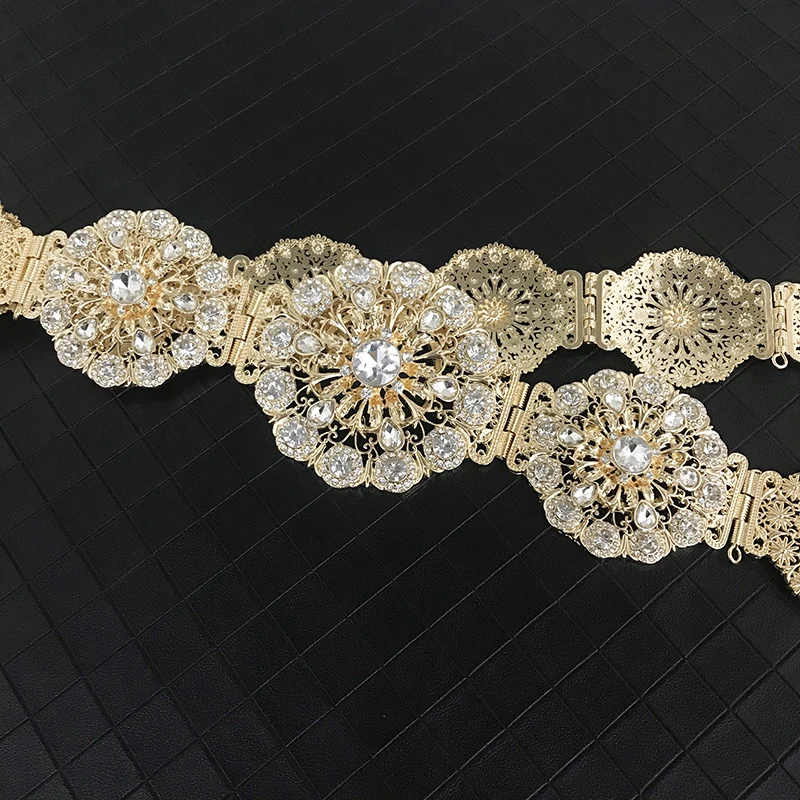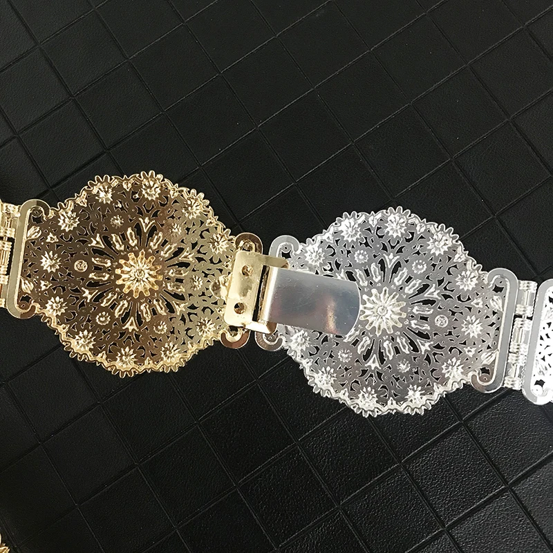 Vintage new women's metallic belt luxury shimmering hollowed-out flowers round waist chain Algerian girls wedding jewelry access