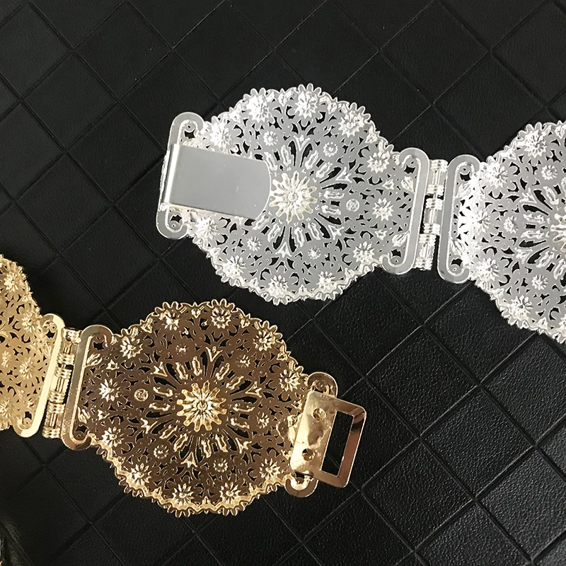 Vintage new women’s metallic belt luxury shimmering hollowed-out flowers round waist chain Algerian