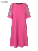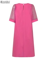 ZANZEA Muslim Fashion Floral Print Maxi Dress Women Elegant Fake Two-Piece Patchwork Abaya Vestidos Islamic Long Sleeve Robes