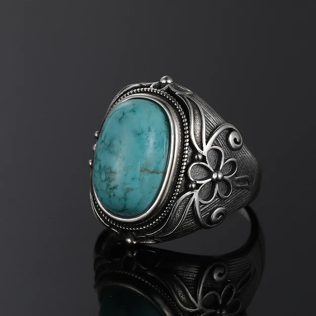 Vintage S925 Sterling Silver Ring Natural Turquoise Rings Luxury Jewelry Party Anniversary Birthday Gift for Women Man