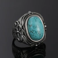 Vintage S925 Silver Ring Natural Turquoise Rings Luxury Jewelry Party Anniversary Birthday Gift for Women Man
