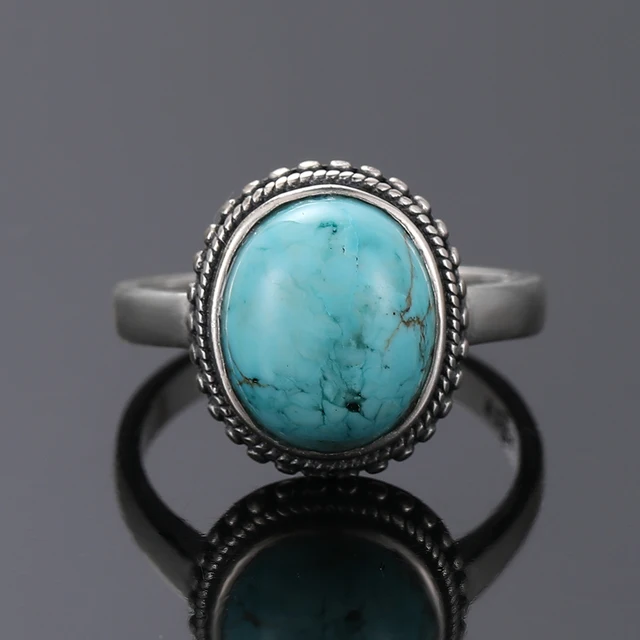 Vintage S925 Silver Ring Natural Turquoise Rings Luxury Jewelry Party Anniversary Birthday Gift for Women