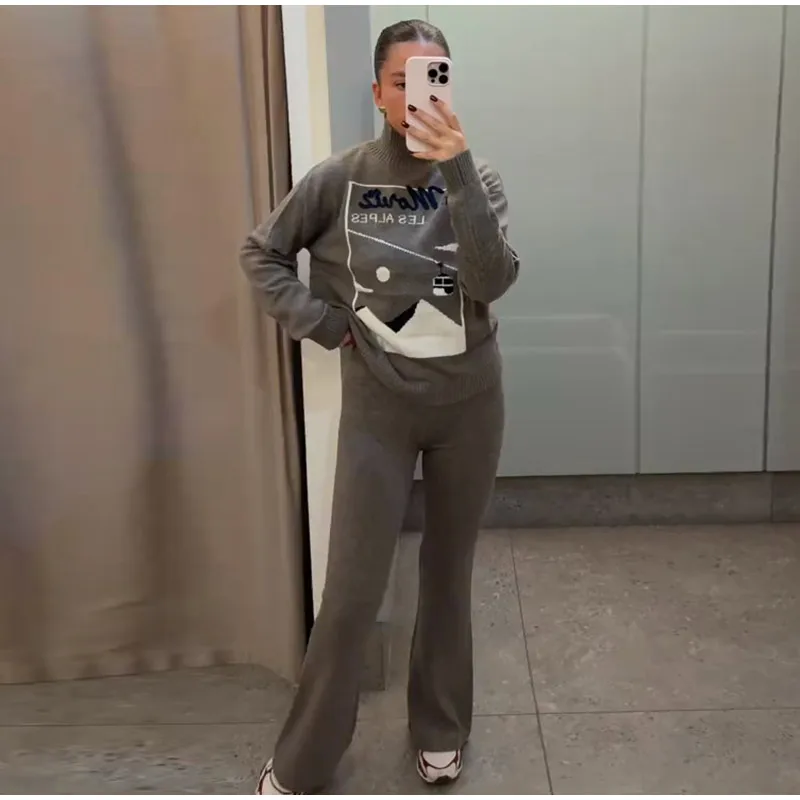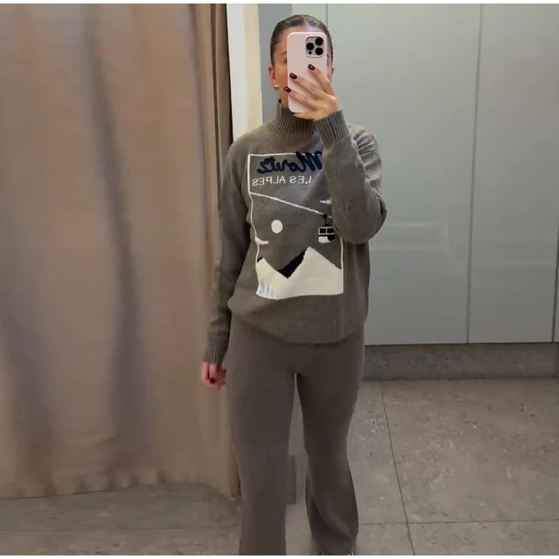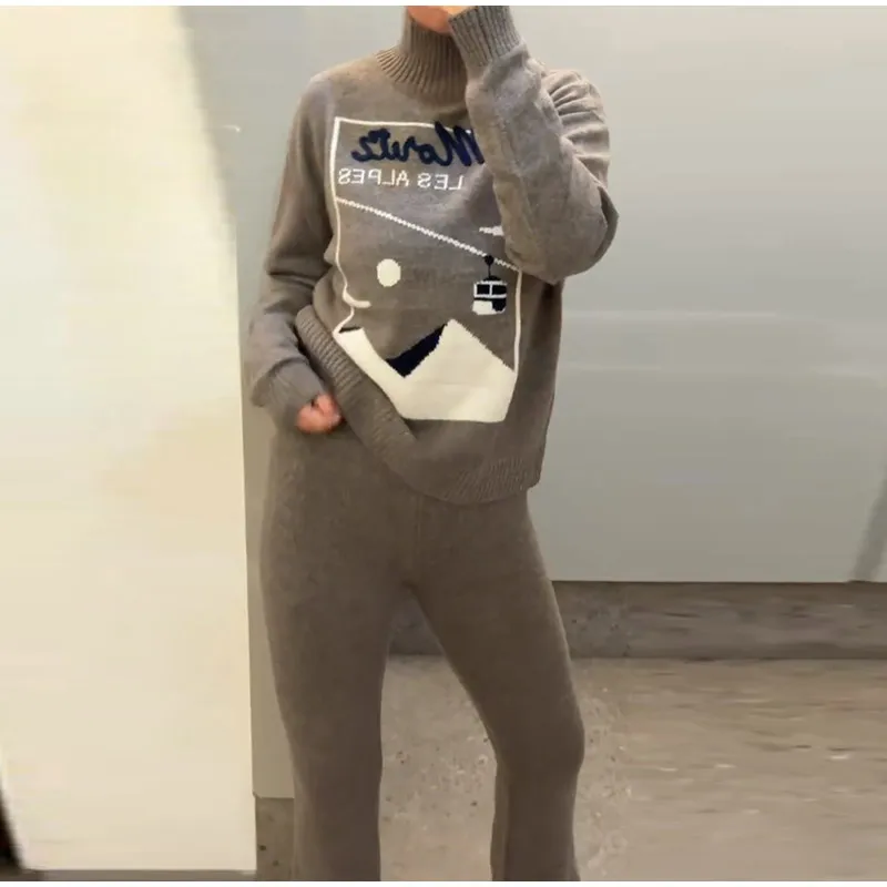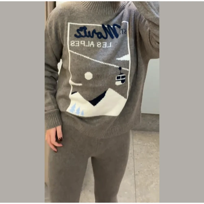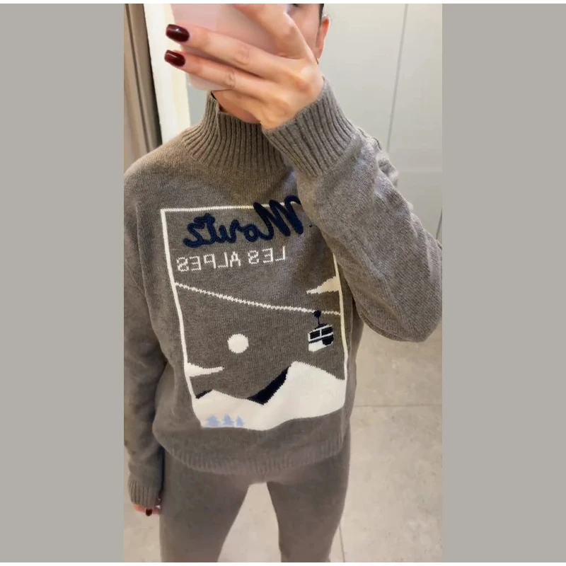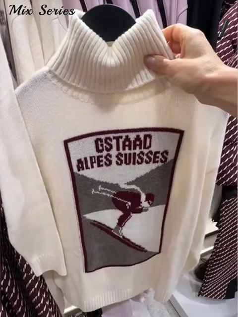 Vintage Ski Pattern Sweater Women's Loose Turtleneck Long Sleeve Knitting Warm Pullover 2026 Spring New Lady Fashion Streetwear