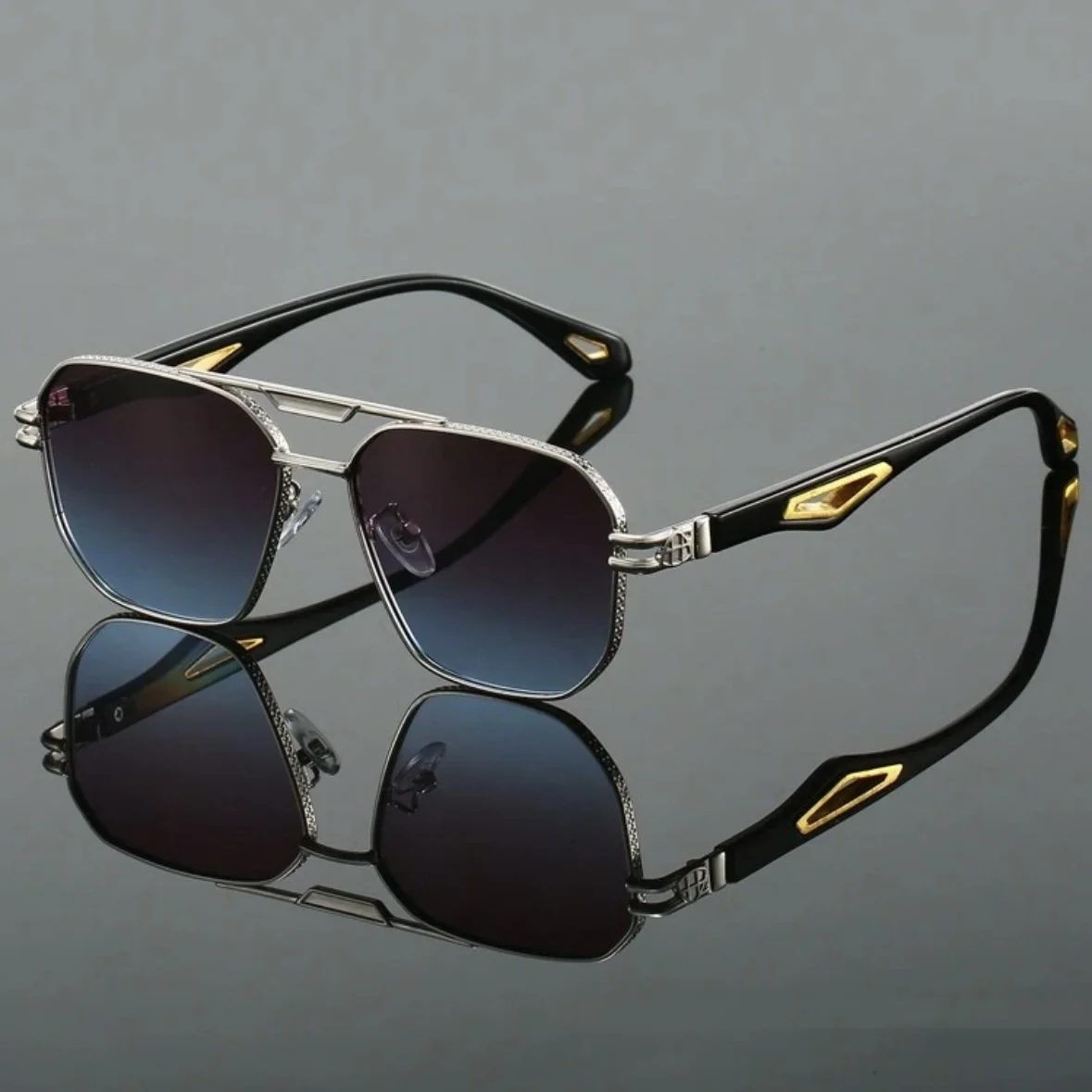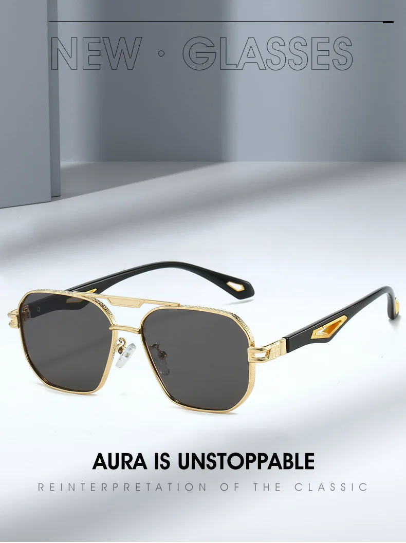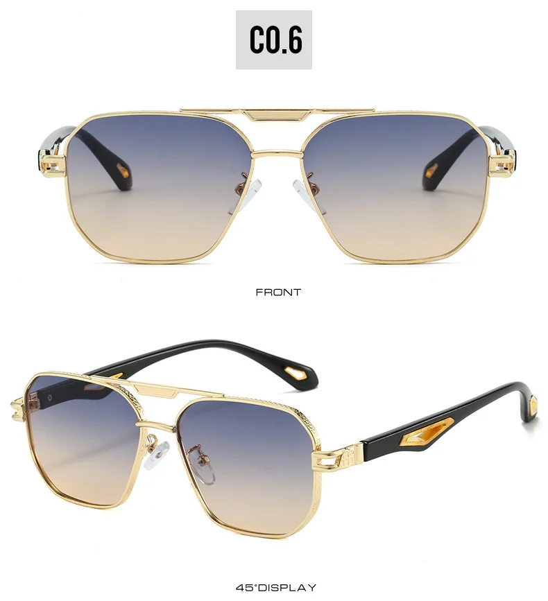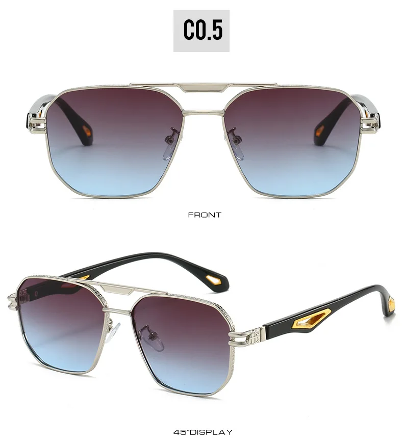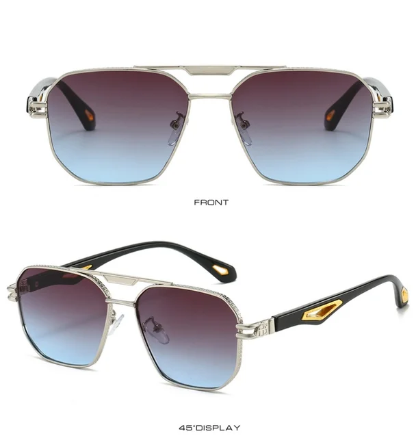 Vintage Square Sunglasses Men New Classic Double Bridge Gradient Shades Trendy Retro Brand Designer Outdoor