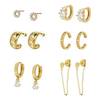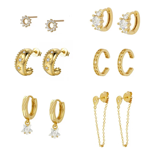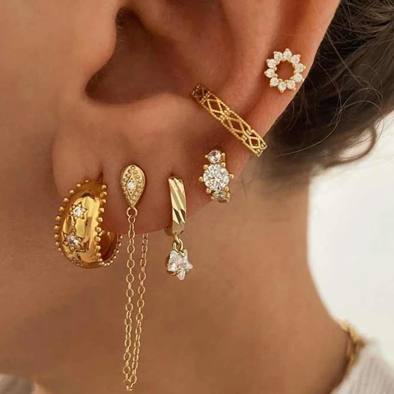 Vintage Stainless Steel Zircon Star Hoop Earrings for Women French Design 18K Gold Plated Chain Earring