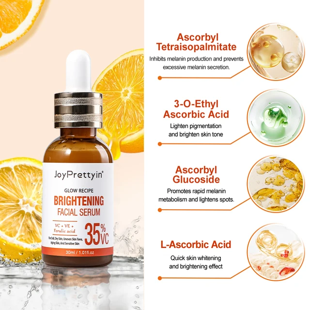 Vitamin C Whitening Facial Serum Fade Dark Spots Hyaluronic Acid Moisturizing Repair Dull Face Essence