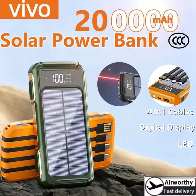 Are you tired of your devices running out of power, especially when you’re outdoors or on the go? Our Vivo Solar Power Bank is here to solve that problem. It comes in three capacity specifications: 50,000mAh, 100,000mAh, and 200,000mAh, so you can choose the one that best fits your needs.