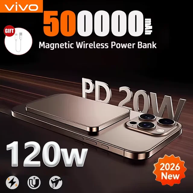 Vivo 2026 500000mAh Magnetic Power Bank Portable Wireless PD22.5W Fast Charging External Battery for Magsafe For iPhone Samsung
