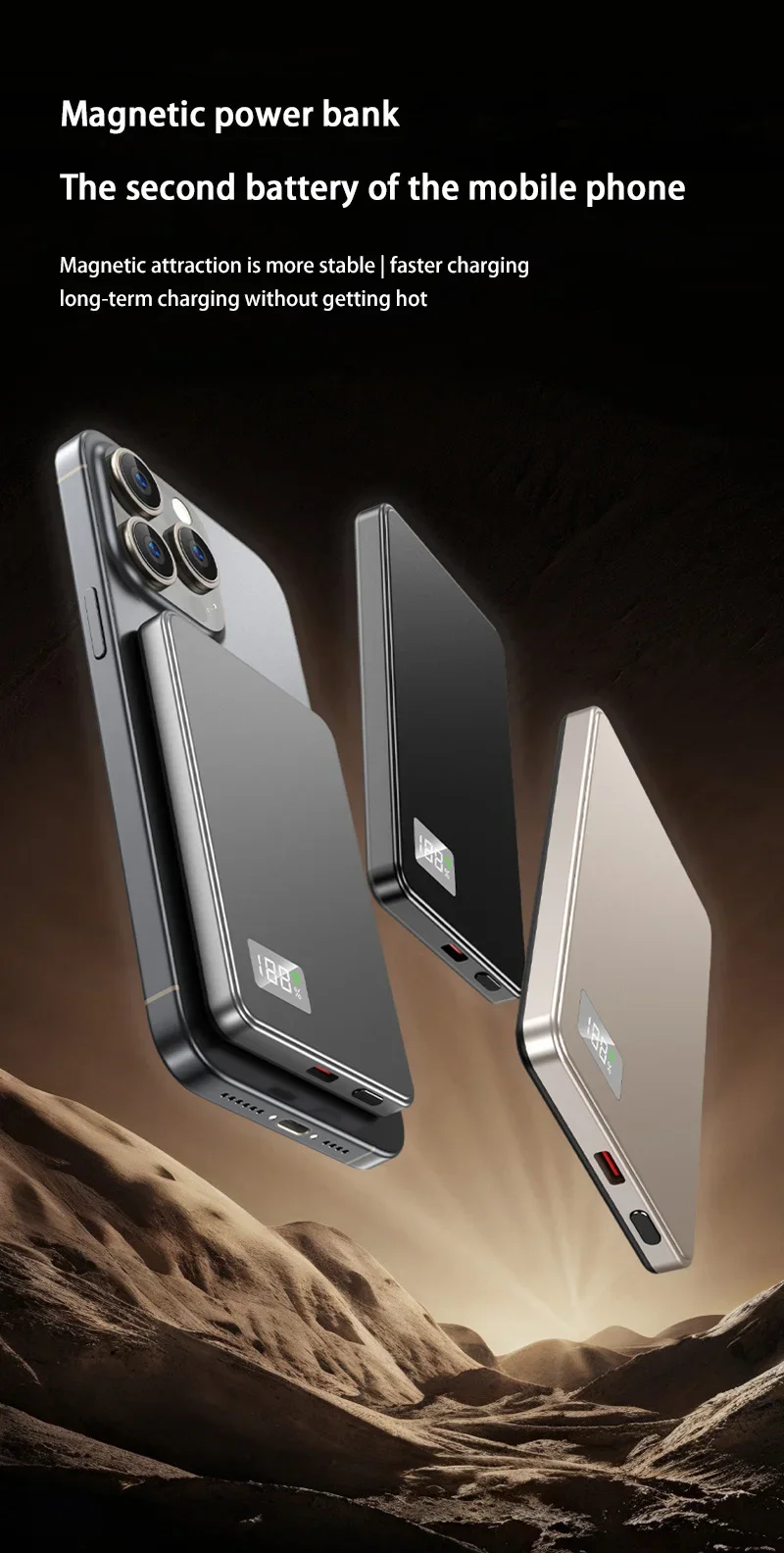Thin and light like wings, magnetic charging instantly | ultra-thin magnetic power bank