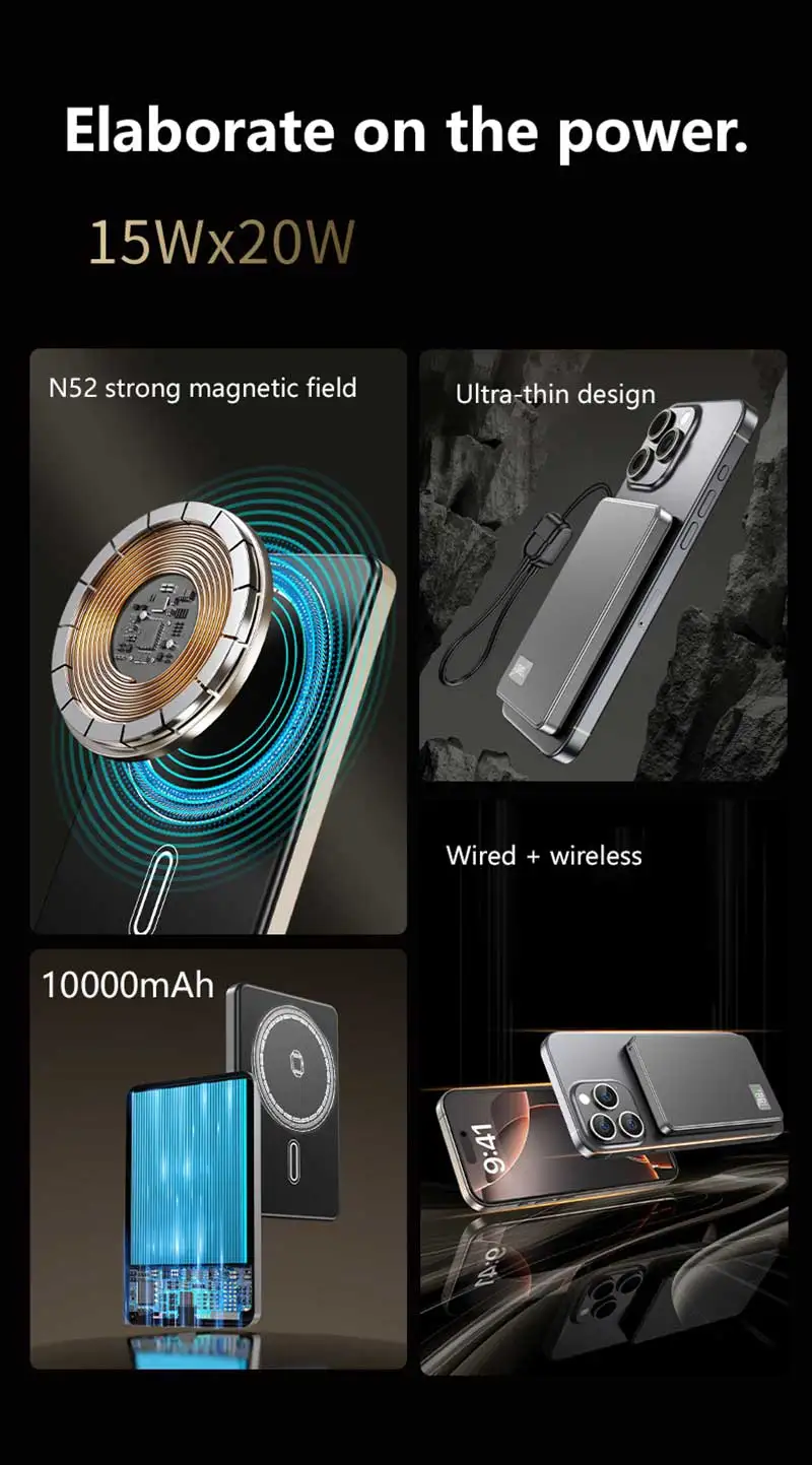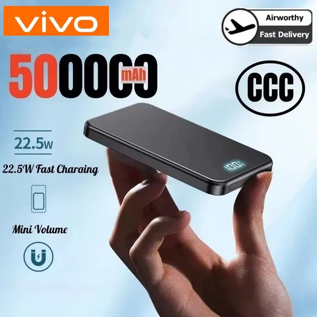 VIVO 3C Certification 50000mAh Powerbank Magnetic Wireless Power Bank PD22.5W Fast Charging External Battery For iPhone Samsung