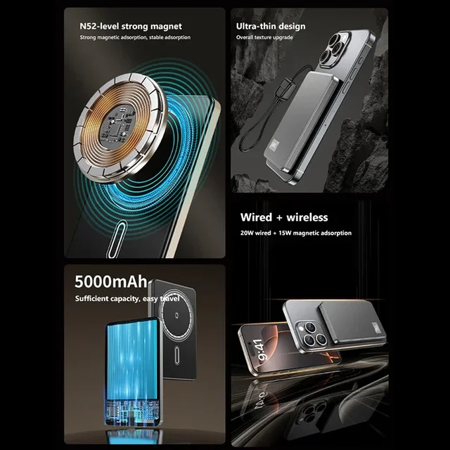 VIVO 500000mAh Magnetic Wireless Power Bank PD22.5W Super Fast Charging External Battery for Magsafe For iPhone Huawei Samsung