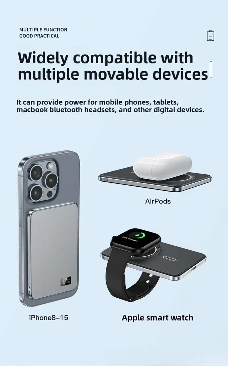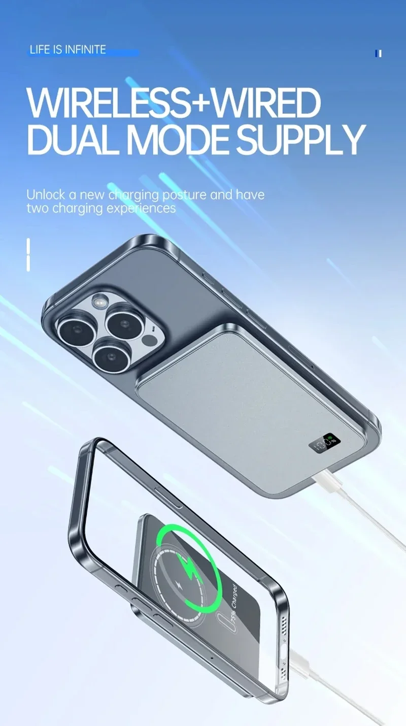 Just right amount of battery: 50000mAh craft brewed battery, optimized for magnetic scenarios, perfectly balanced between lightweight and battery life, easily replenishing the phone’s battery for more than 10 times.
