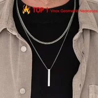 Vnox 3D Vertical Bar Necklaces for Men, Layering Stainless Steel Geometric Pendant, Layered Wheat Rope