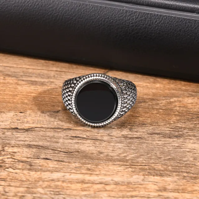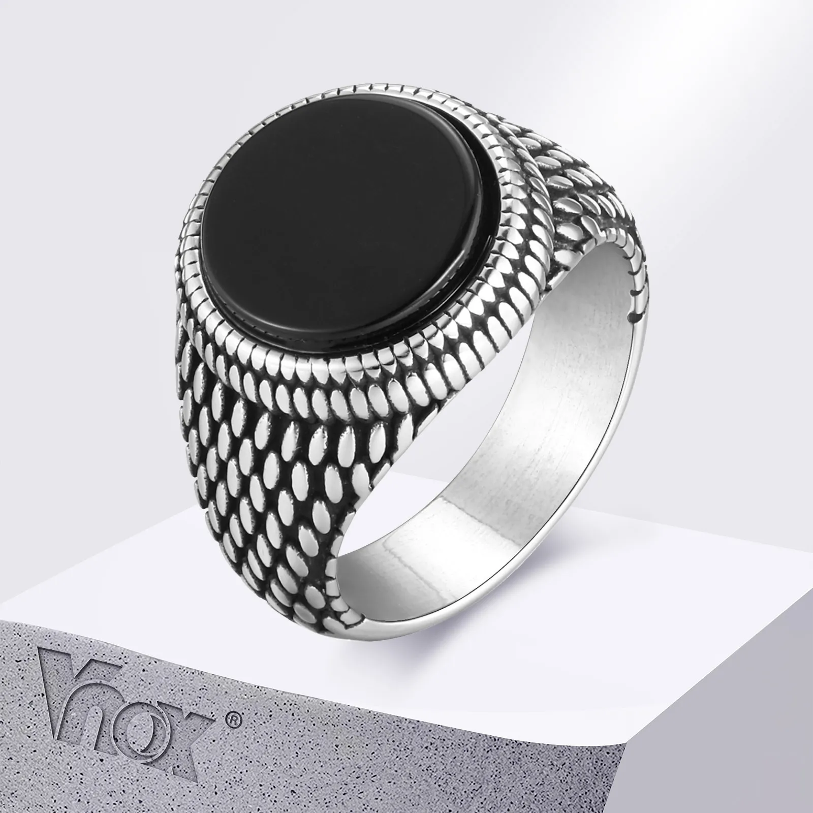 Vnox Men’s Stamp Ring, Retro Round Gemstone Ring Vintage Stainless Steel Scales Hip Hop Ring Band