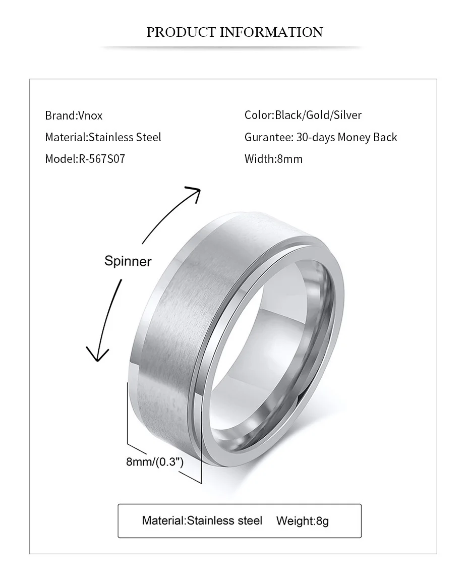 Vnox Rotatable Spinner Ring For Men Women,6/8mm Solid Glossy Matte Wedding Band,Basic Simple Casual Classic Retro Fraternal Ring