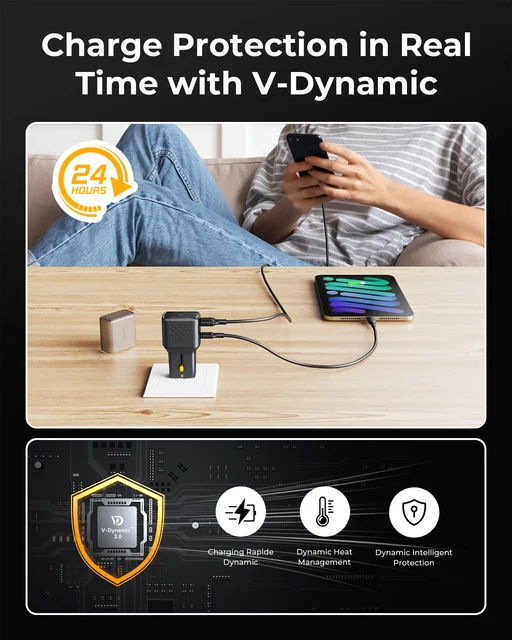 VOLTME USB C fast chargers adopt the latest V-Dynamic Tech which provide safer and more reliable charging.