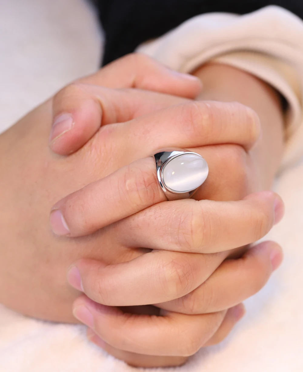 VQYSKO Luxury Big Red/White/Coffee Opal Ring New Arrival Style for Women/Men Stainless Steel Rings Fashion
