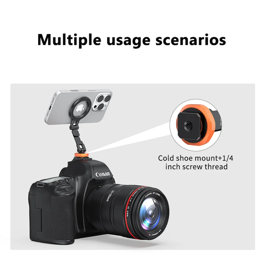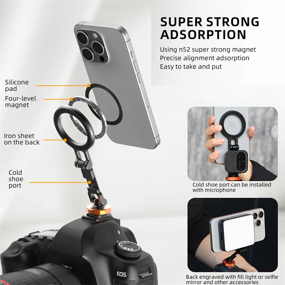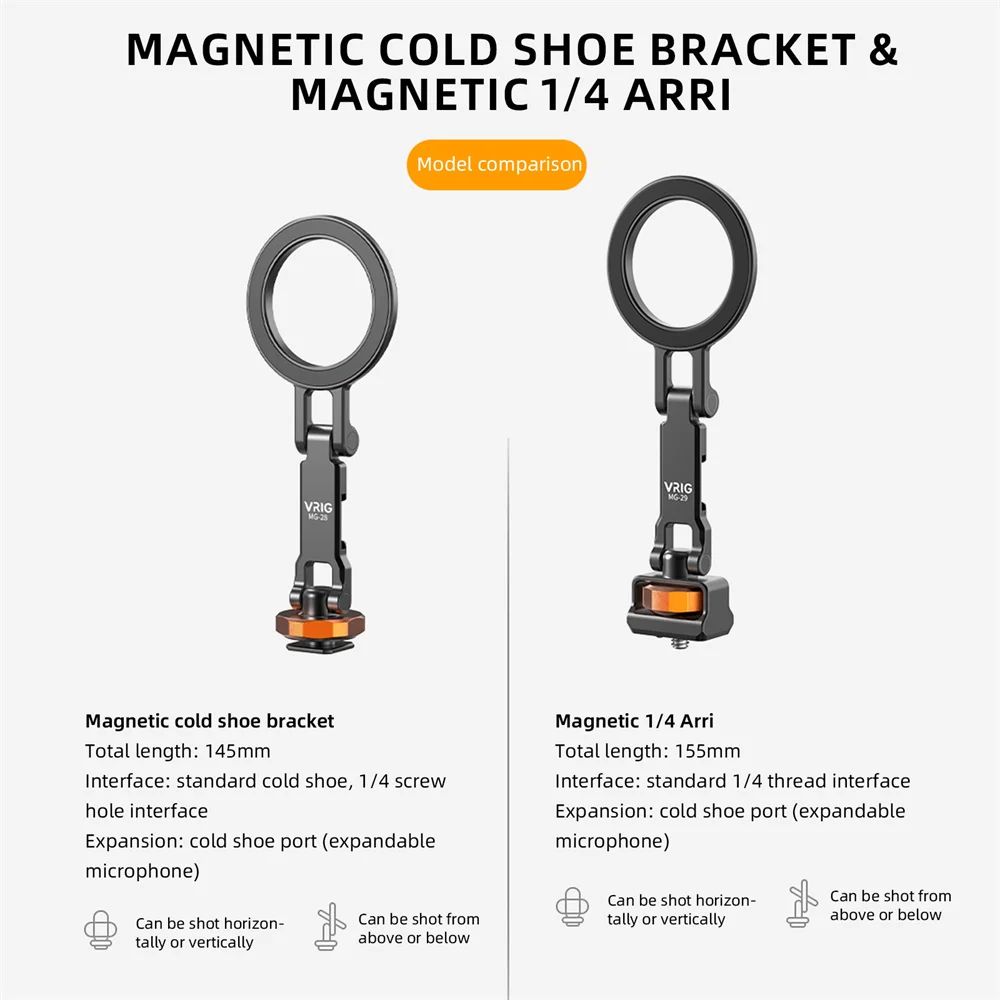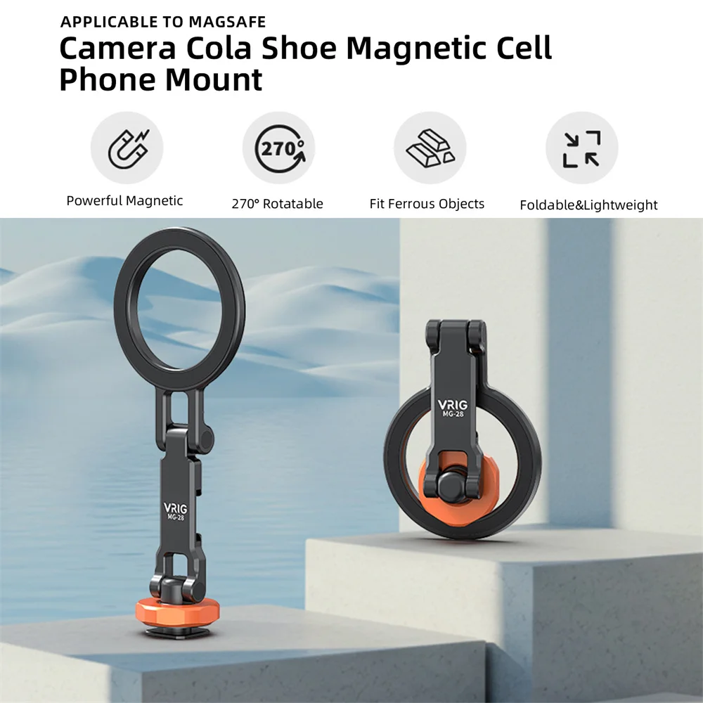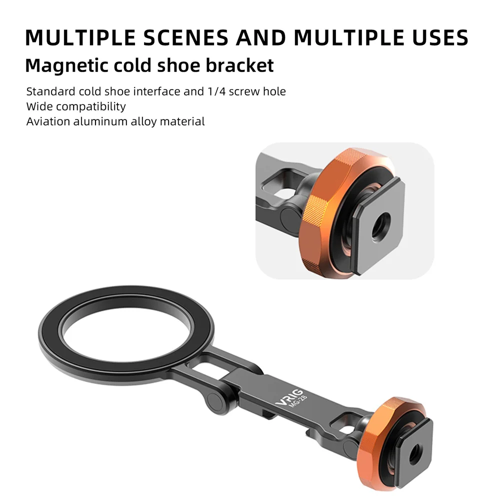VRIG Magnetic Cold Shoe Mount Phone Holder W 1/4 Phone Tripod Mount for MagSafe iPhone 16 15 14 Samsung