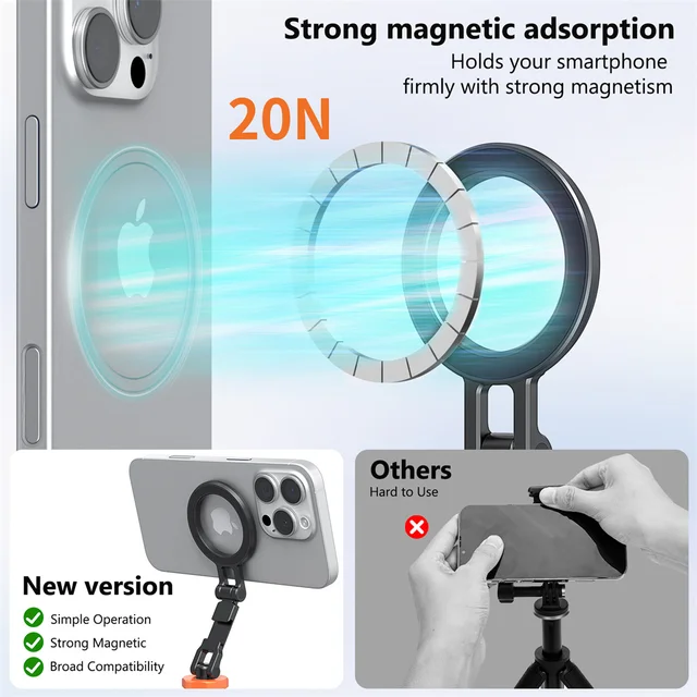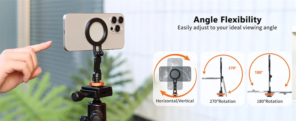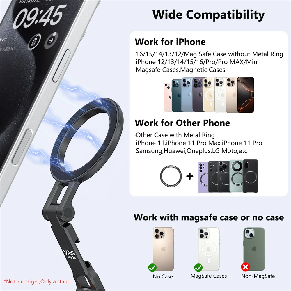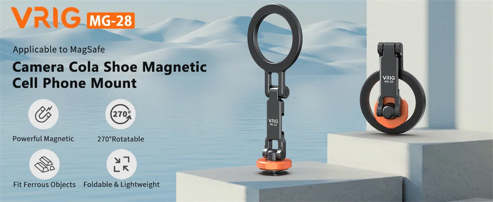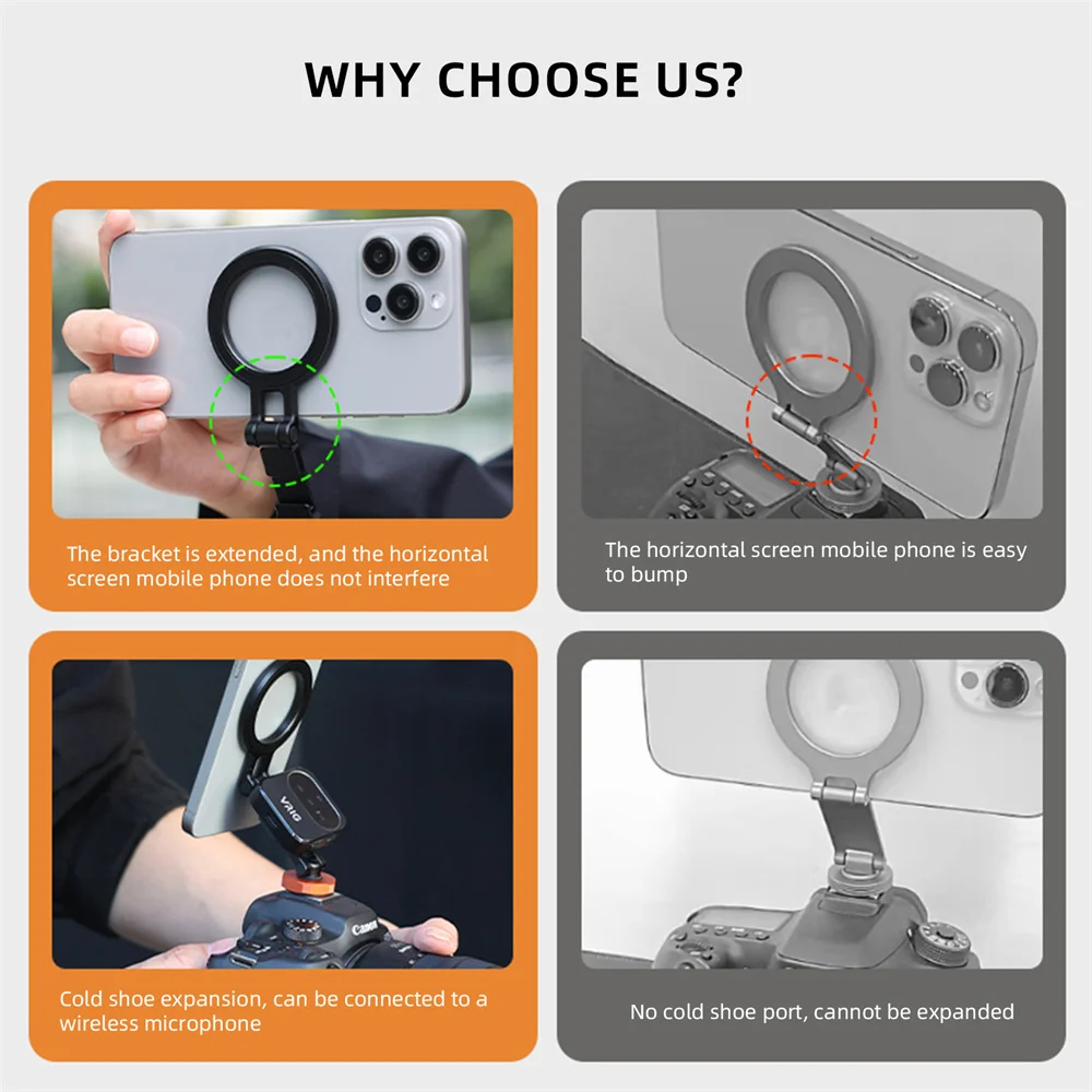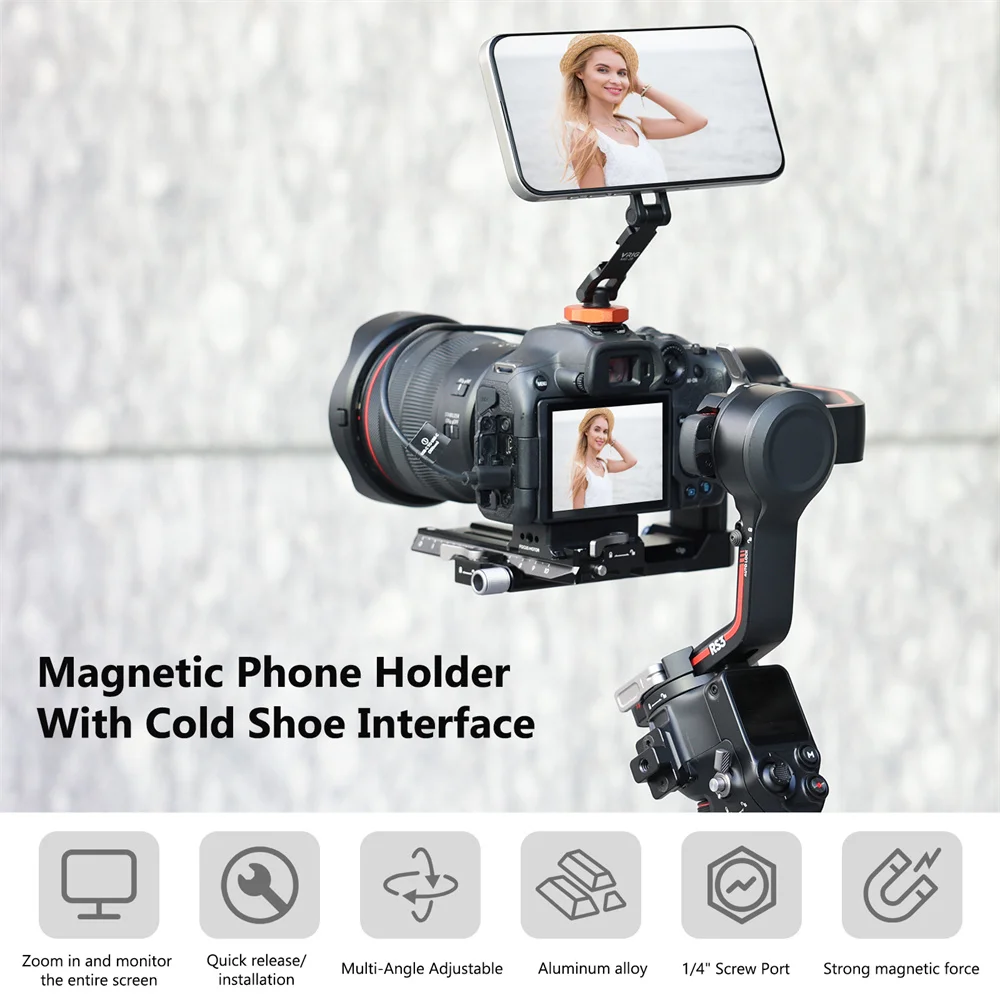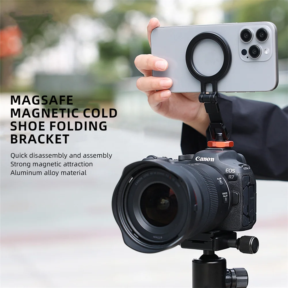 VRIG Magnetic Cold Shoe Mount Phone Holder W 1/4 Phone Tripod Mount for MagSafe iPhone 16 15 14 Samsung