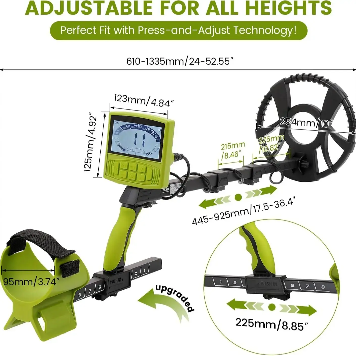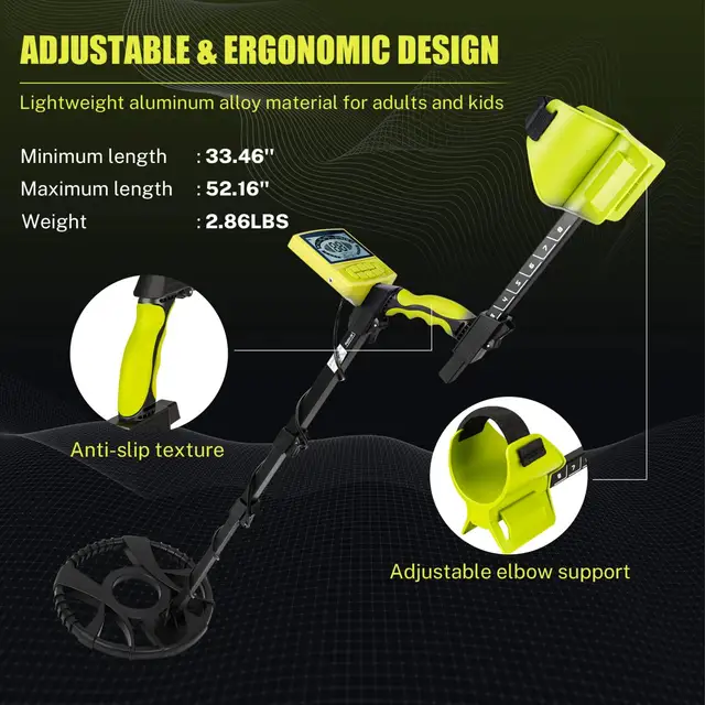 adjustable position armrest. This metal detector is very popular in the world market with very stable performance and