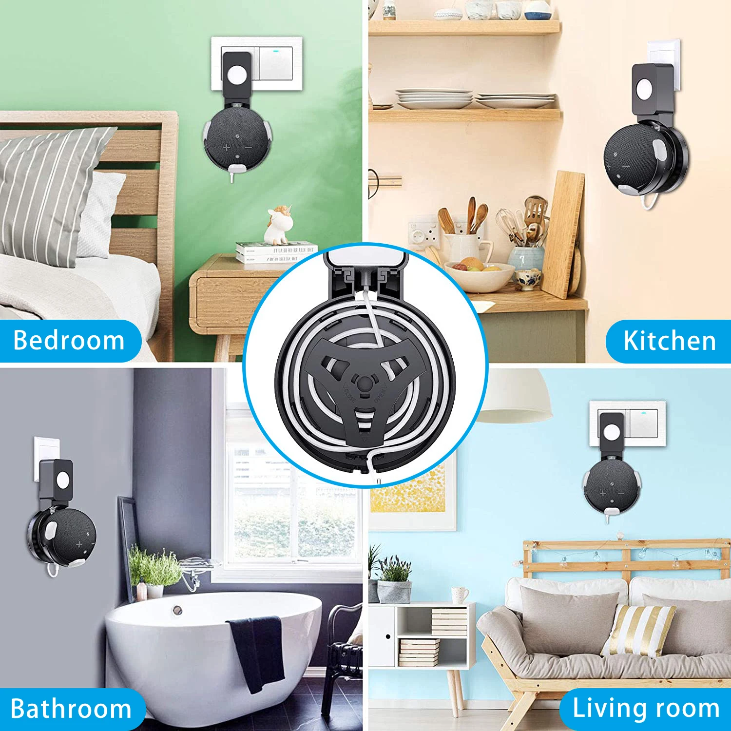 LINGYOU Wall Mount for Alexa Echo Dot Max 5th 4th Gen Echo Pop with Built-in Cable Management Space-Saving Bracket