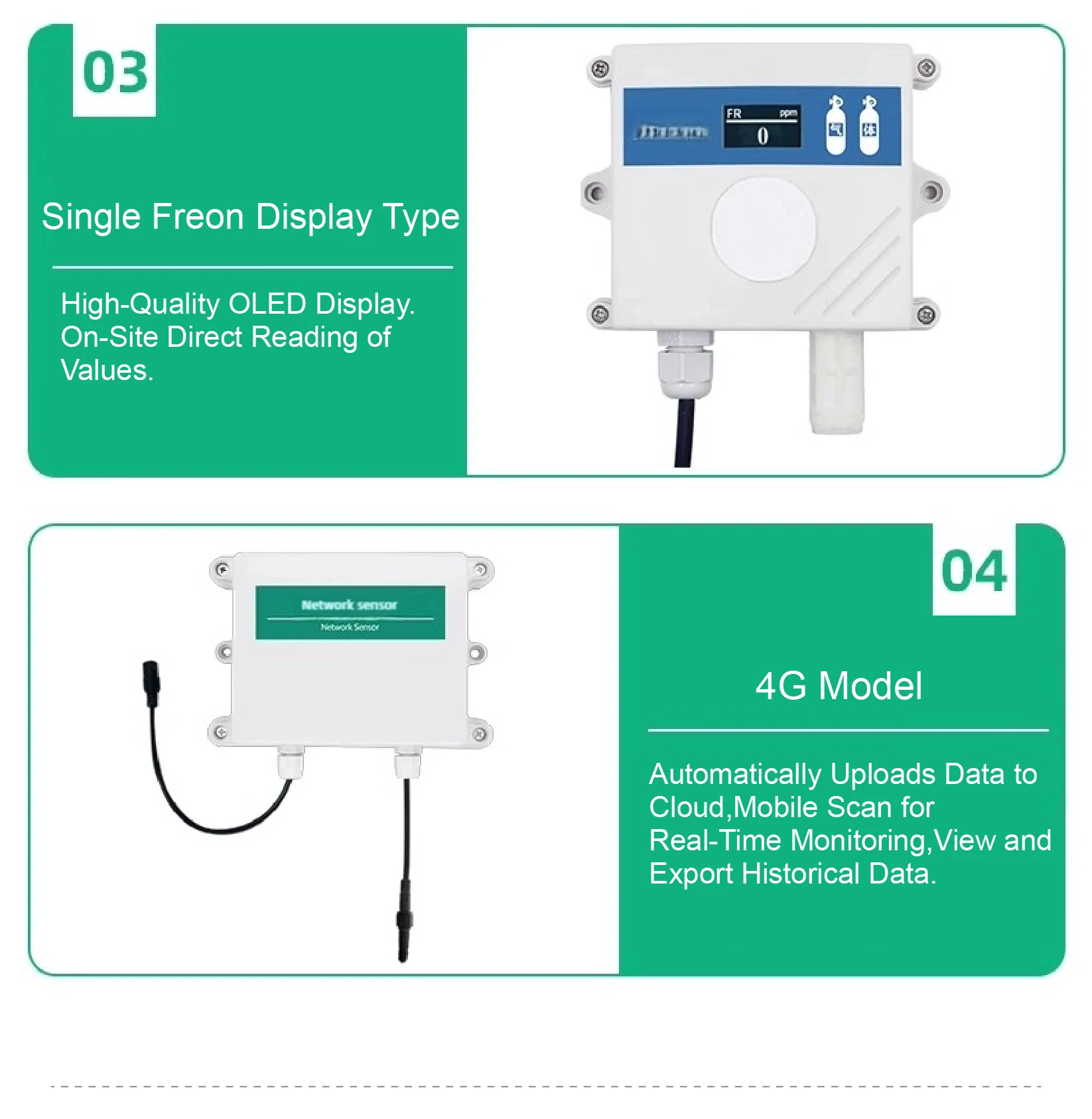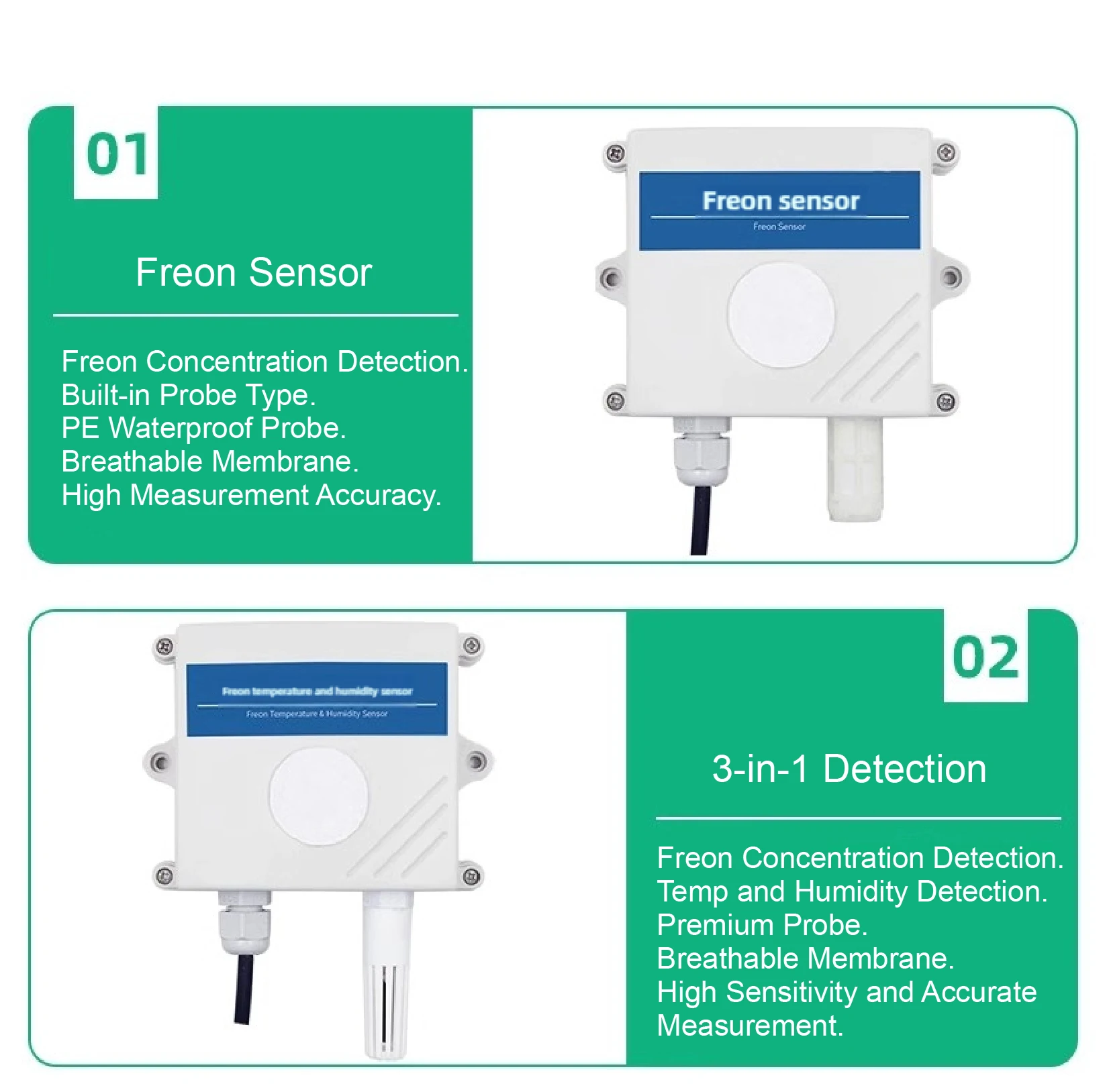 Suitable for HVAC systems monitoring refrigerant concentration and temperature/humidity.