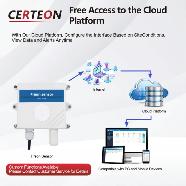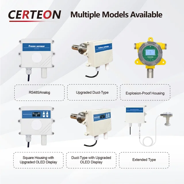 Suitable for HVAC systems monitoring refrigerant concentration and temperature/humidity.