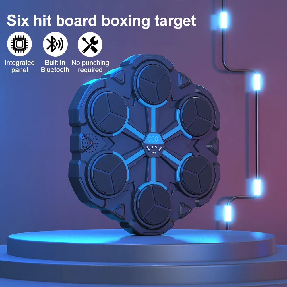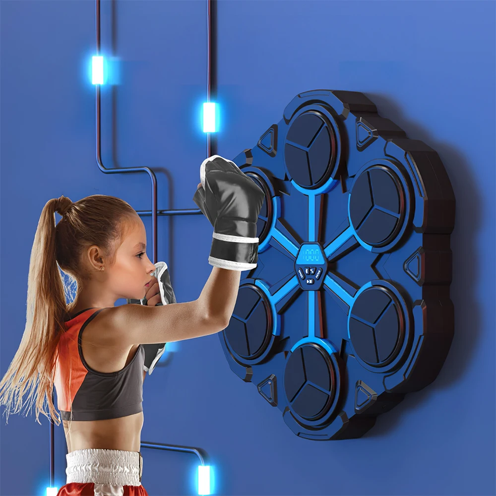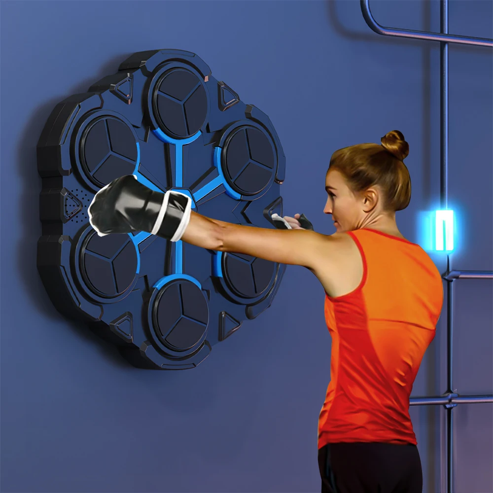 Wall-Mounted Smart Boxing Machine Bluetooth Music Sync LED Score Display 6 Targets Adjustable Height Force Home Gym Trainer