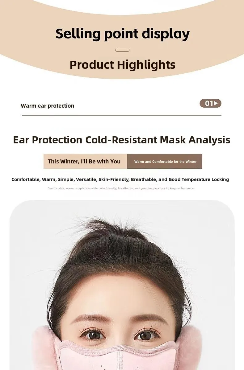 This winter mask features a versatile design, serving as both a face mask and ear covers, providing comprehensive protection against the cold.