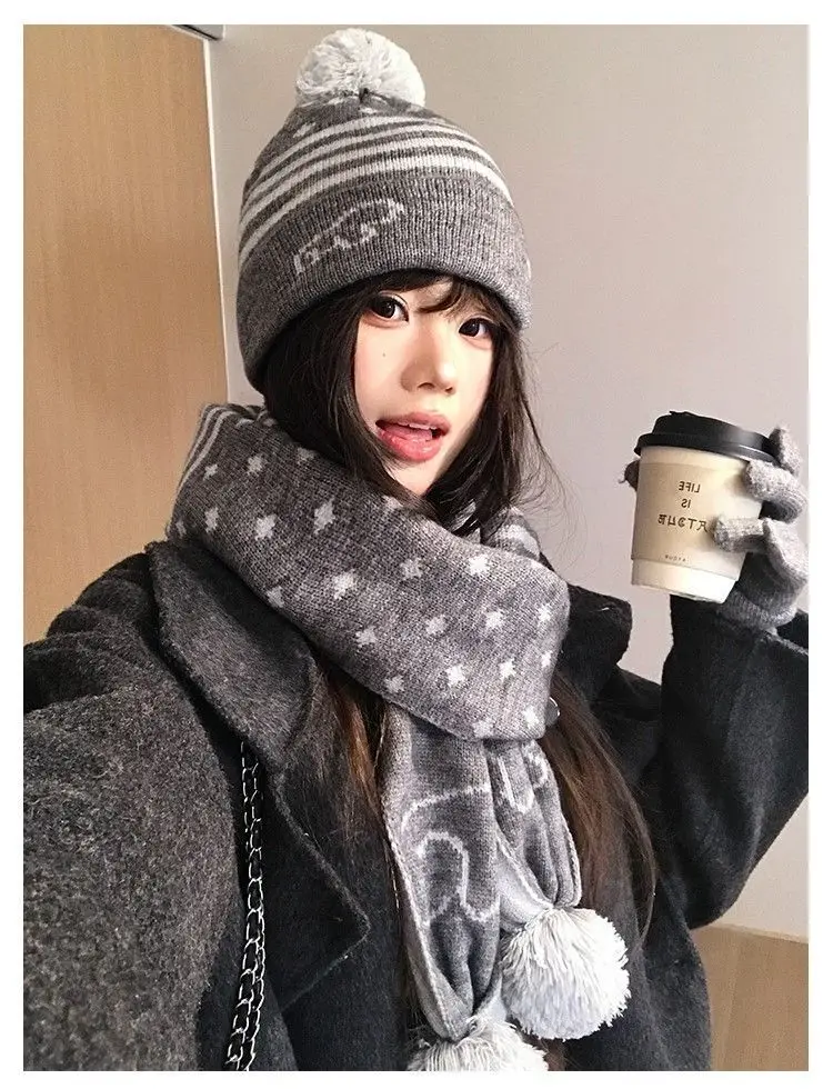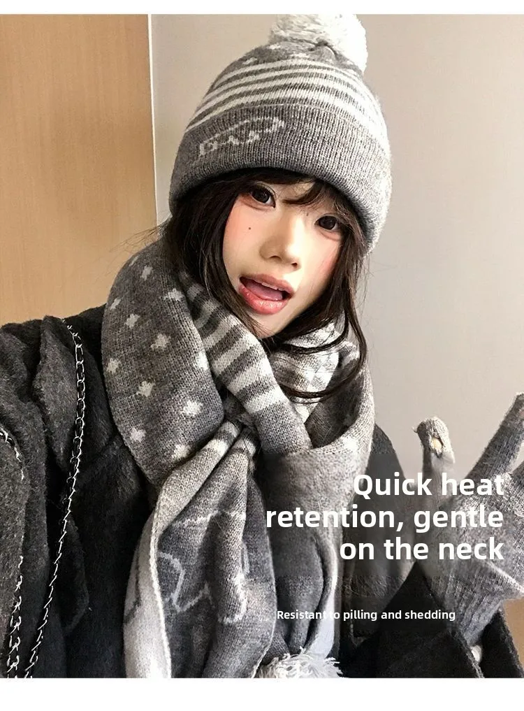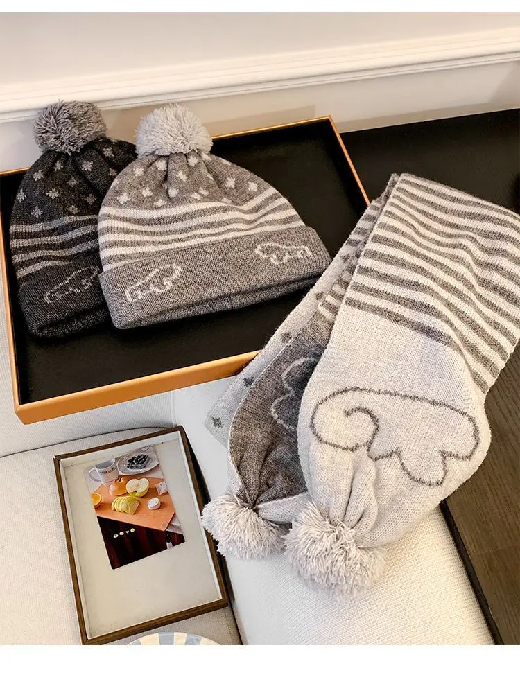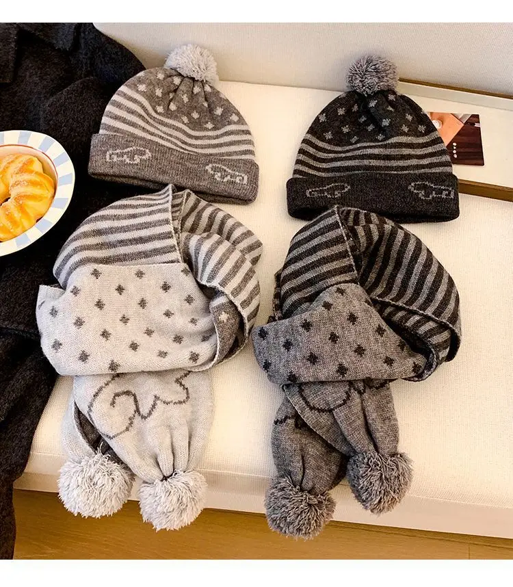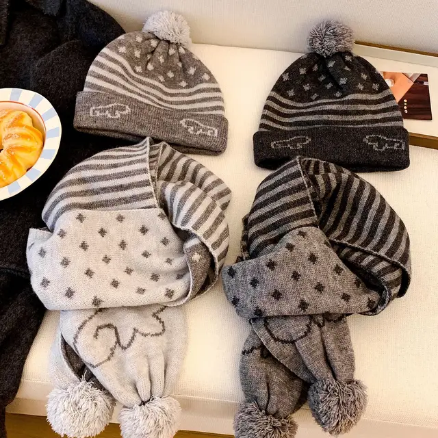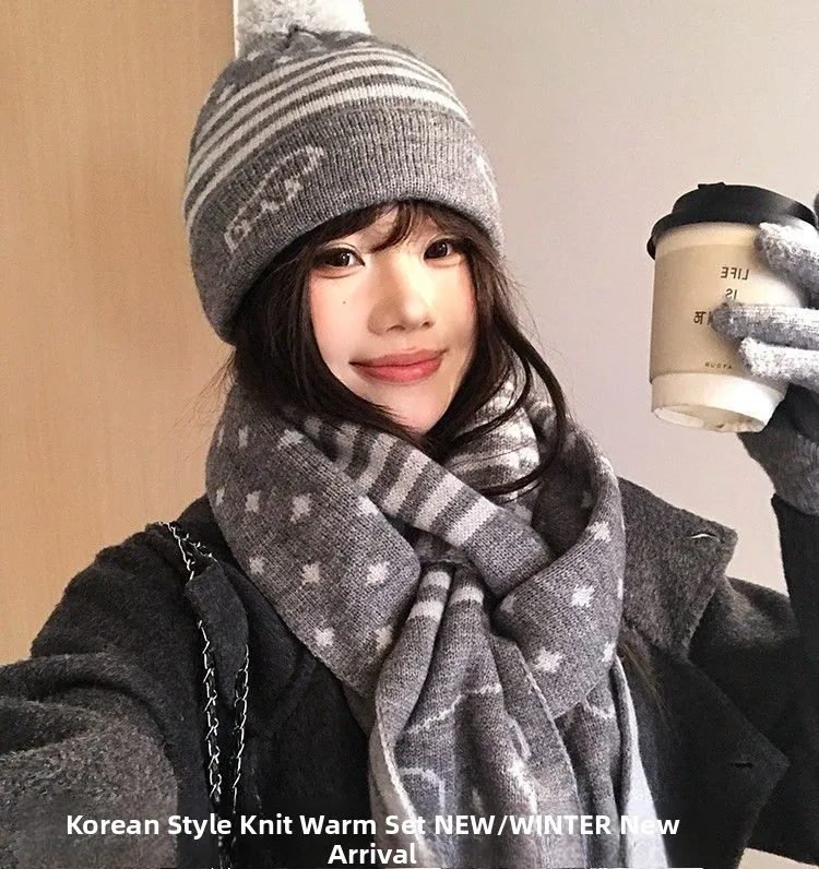 Crafted for winter, this gray knit hat and scarf set offers unparalleled warmth and comfort, keeping you snug during the cold months.